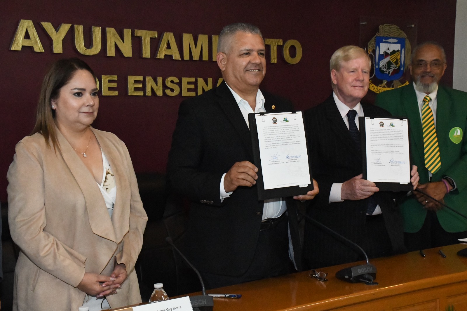 Ensenada, B.C.- Martes 21 de mayo de 2024.- Para reforzar los lazos de amistad y de cooperación binacional, el alcalde Carlos Ibarra Aguiar y su homólogo Robert H. McConnell, firmaron el convenio de hermanamiento entre las ciudades de Ensenada y Vallejo, California.