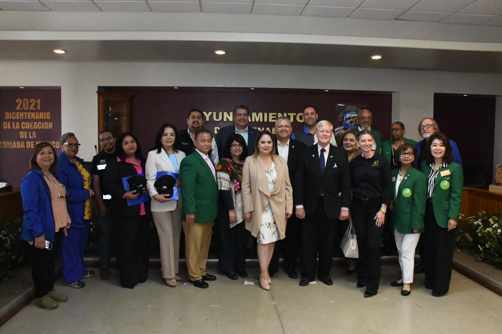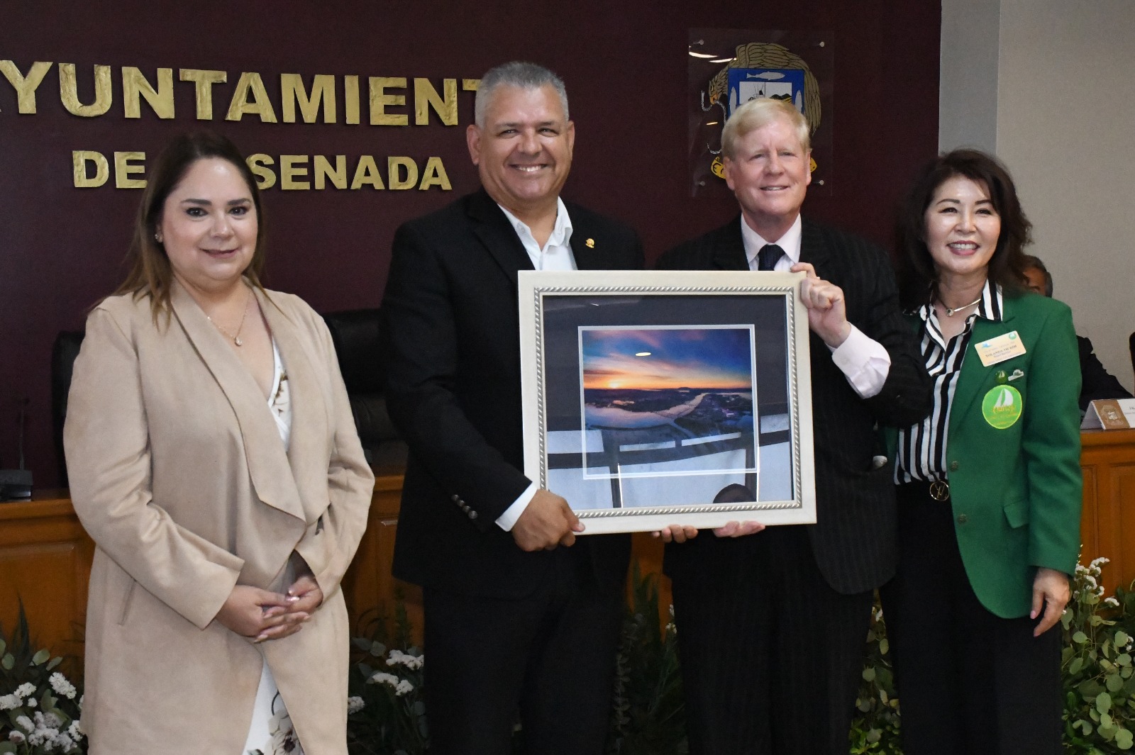 Participaron en el protocolo: el secretario general del Ayuntamiento, José Antonio Vázquez Castañeda; Erika Marisol Acuña Buelna, directora de Relaciones Públicas; Efraín Kantel Sánchez, director de Asuntos Internacionales; y, Pelton Stewart, integrante de la Comisión de Ciudades Hermanas de Vallejo, CA.