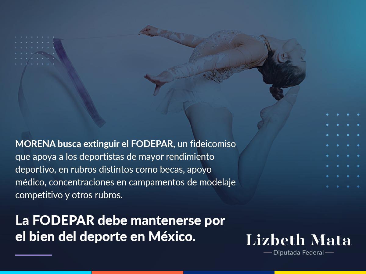 Los Diputados del Grupo Parlamentario del Partido Acción Nacional, seguiremos levantando la voz y trabajando desde el Congreso de la Unión contra las arbitrariedades y ocurrencias del Presidente de la República, pues ahora toca a los deportistas ser los afectados, expresó la Diputada Federal Lizbeth Mata Lozano, quien explicó que López Obrador recientemente emitió un decreto para desaparecer casi 50 fideicomisos.
