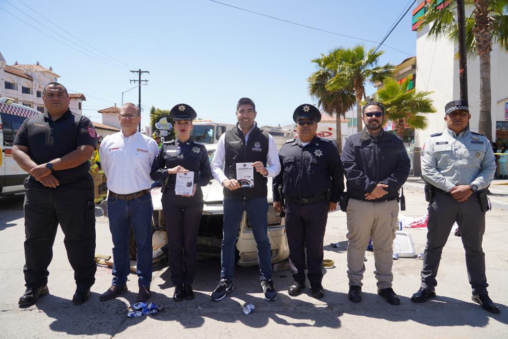 Durante el simulacro, realizado sobre bulevar Costero y Club Rotario, se mostró a dos adultos y dos menores, los cuales se encontraban dentro del vehículo, luego de chocar su automóvil por el exceso de velocidad y consumir bebidas embriagantes, ocasionando el atropellamiento de un peatón.