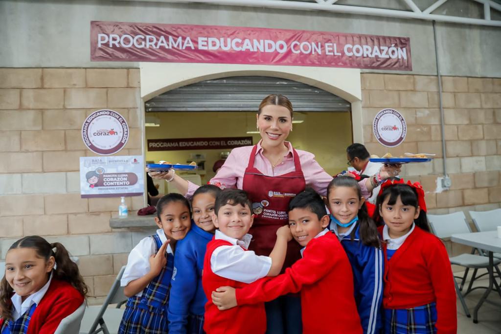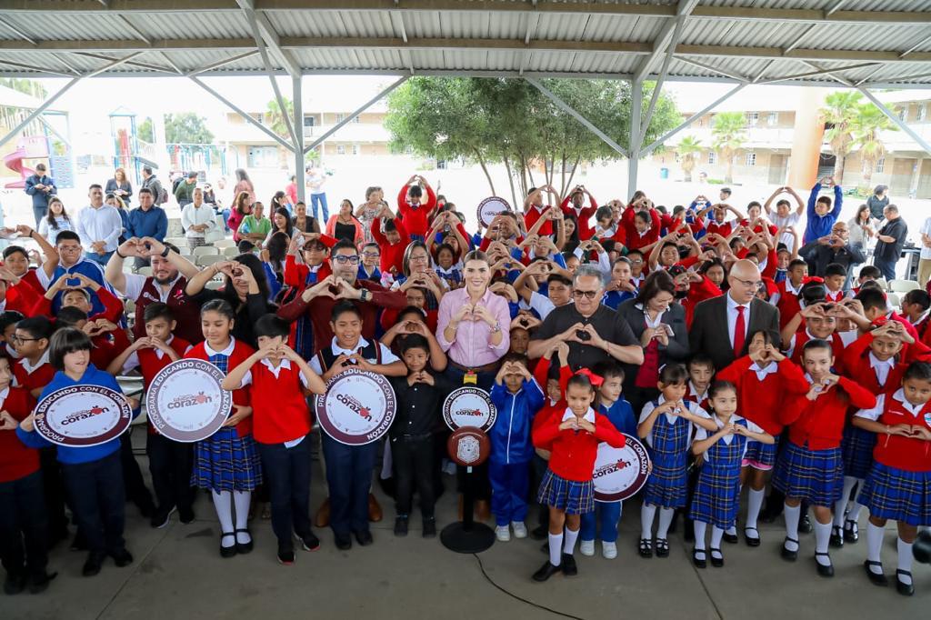 “También que continuamos trabajando para que podamos seguir ampliando el número de escuelas que están dentro del programa Educando con el Corazón, porque para nosotros lo más importante son todas y todos ustedes, mis niñas y niños que son el centro de la política pública de mi gobierno, es decir, son el centro de todos los programas que tenemos en el gobierno del Estado, porque todo lo que hacemos, lo hacemos pensando en la niñez de Baja California porque al apoyarlos a ustedes apoyamos a sus mamás, a sus papás, a sus abuelitas, a sus abuelitos”, expresó a las y los estudiantes presentes.