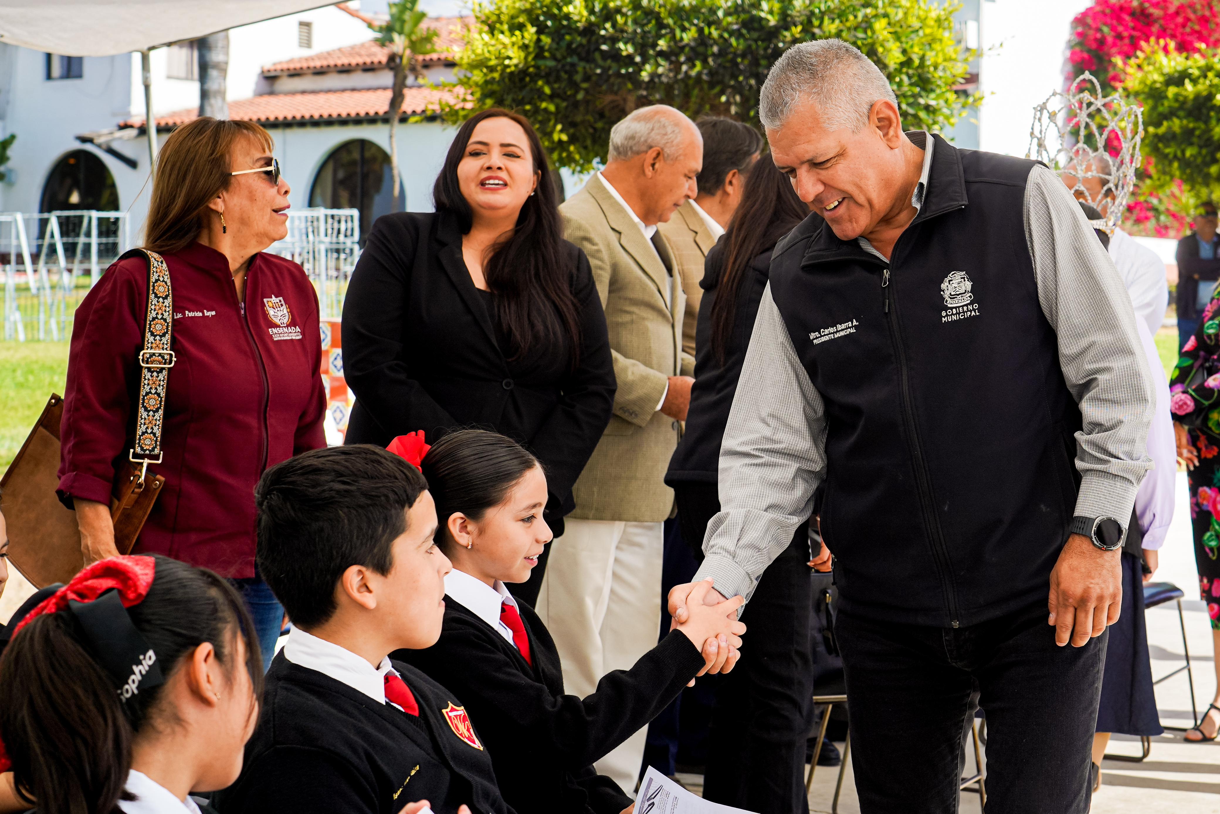 Estuvieron en el presidium Gabriela Gay Ibarra, presidenta del DIF Ensenada; capitán de corbeta, Artemisa Ventura, representante de la Segunda Región Naval; Norma Silva Aguirre, regidora presidenta de la Comisión de Educación, Cultura, Ciencia y Tecnología; Catalina López Pérez, jefa del Departamento de Educación Municipal, además de la participación de la banda de guerra y escolta de Seguridad Pública, así como el alumnado y personal docente del Colegio Wunder Kind.