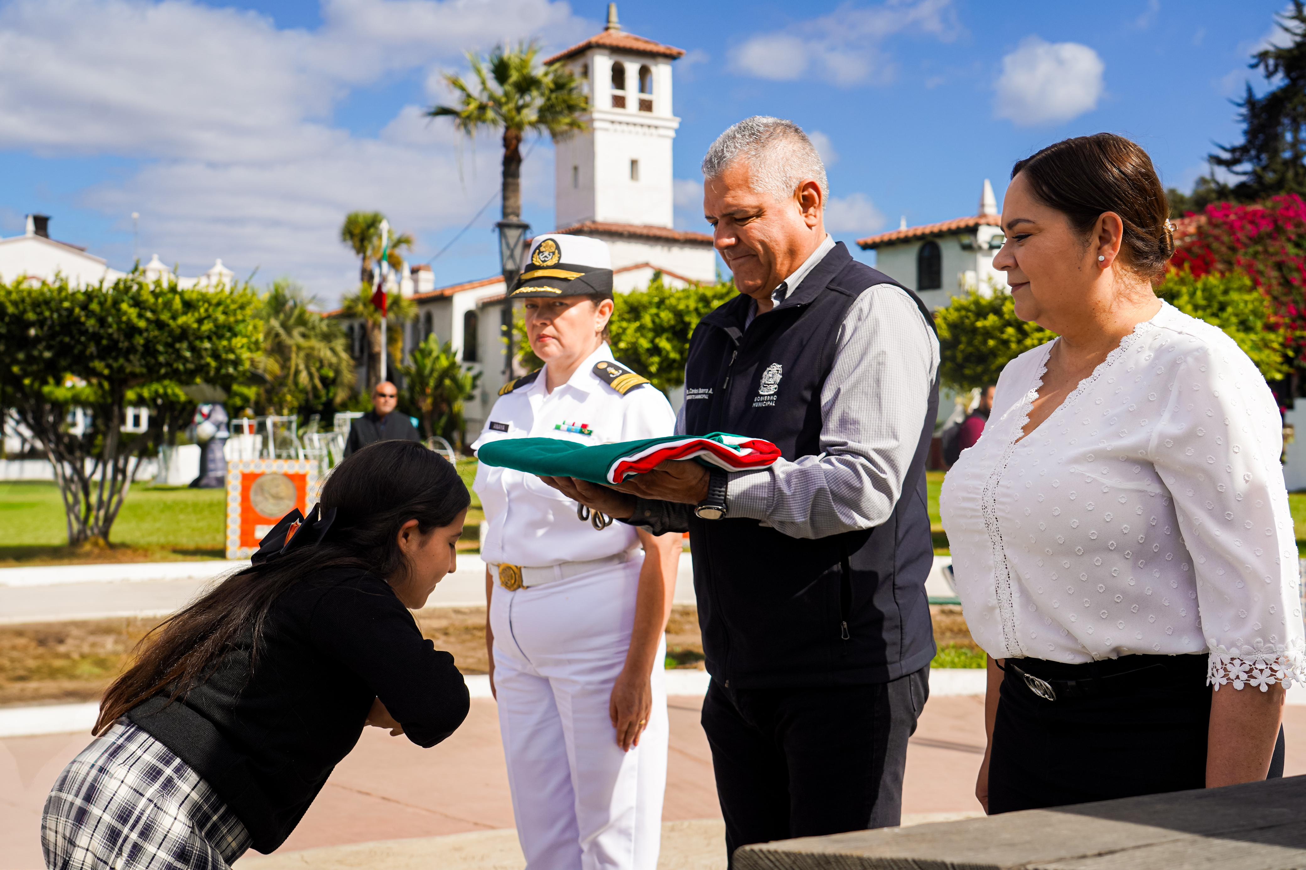 Estuvieron en el presidium Gabriela Gay Ibarra, presidenta del DIF Ensenada; capitán de corbeta, Artemisa Ventura, representante de la Segunda Región Naval; Norma Silva Aguirre, regidora presidenta de la Comisión de Educación, Cultura, Ciencia y Tecnología; Catalina López Pérez, jefa del Departamento de Educación Municipal, además de la participación de la banda de guerra y escolta de Seguridad Pública, así como el alumnado y personal docente del Colegio Wunder Kind.