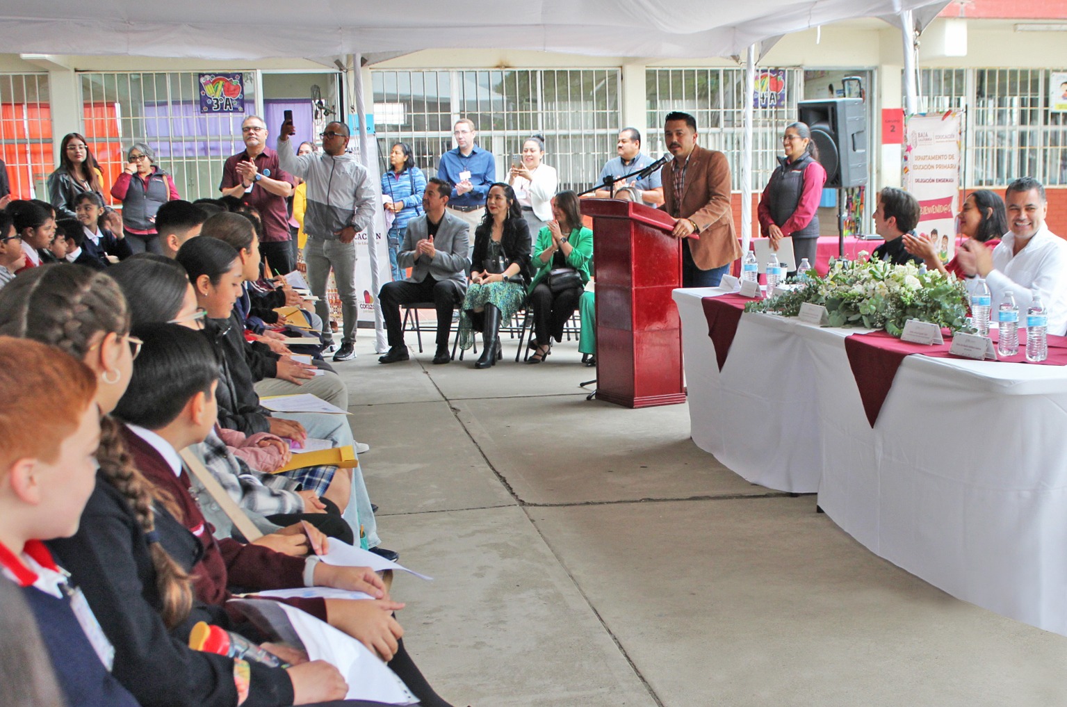 En la Olimpiada del Conocimiento Infantil 2025 estuvieron presentes: Arturo Aguilar Cital, encargado del Departamento de Educación Primaria en Ensenada; Iris Noelia Arellano Galarza, jefa del Sector 06 de Educación Primaria; Juan Gálvez Lugo, coordinador territorial del Consejo Nacional de Fomento Educativo (CONAFE); Zulma Sarabia Ocampo, coordinadora estatal de Educación Migrante; y como invitado especial Diego Alejandro Lara Arregui, diputado estatal del XVI Distrito.