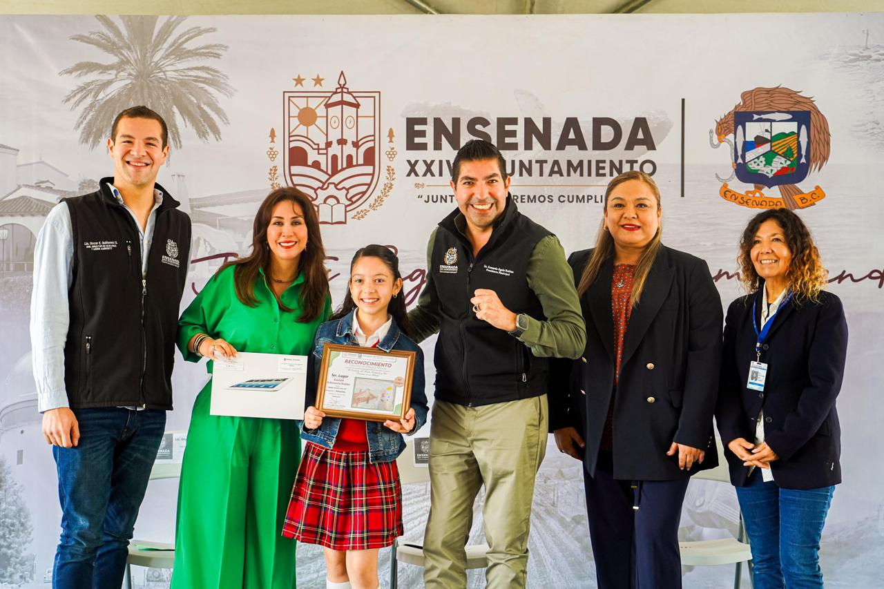 Posteriormente, felicitó a los alumnos ganadores del concurso de dibujo “El cuidado del medio ambiente y los océanos”, quienes a la par recibieron un reconocimiento y una tableta electrónica para fortalecer sus herramientas de aprendizaje en la escuela.