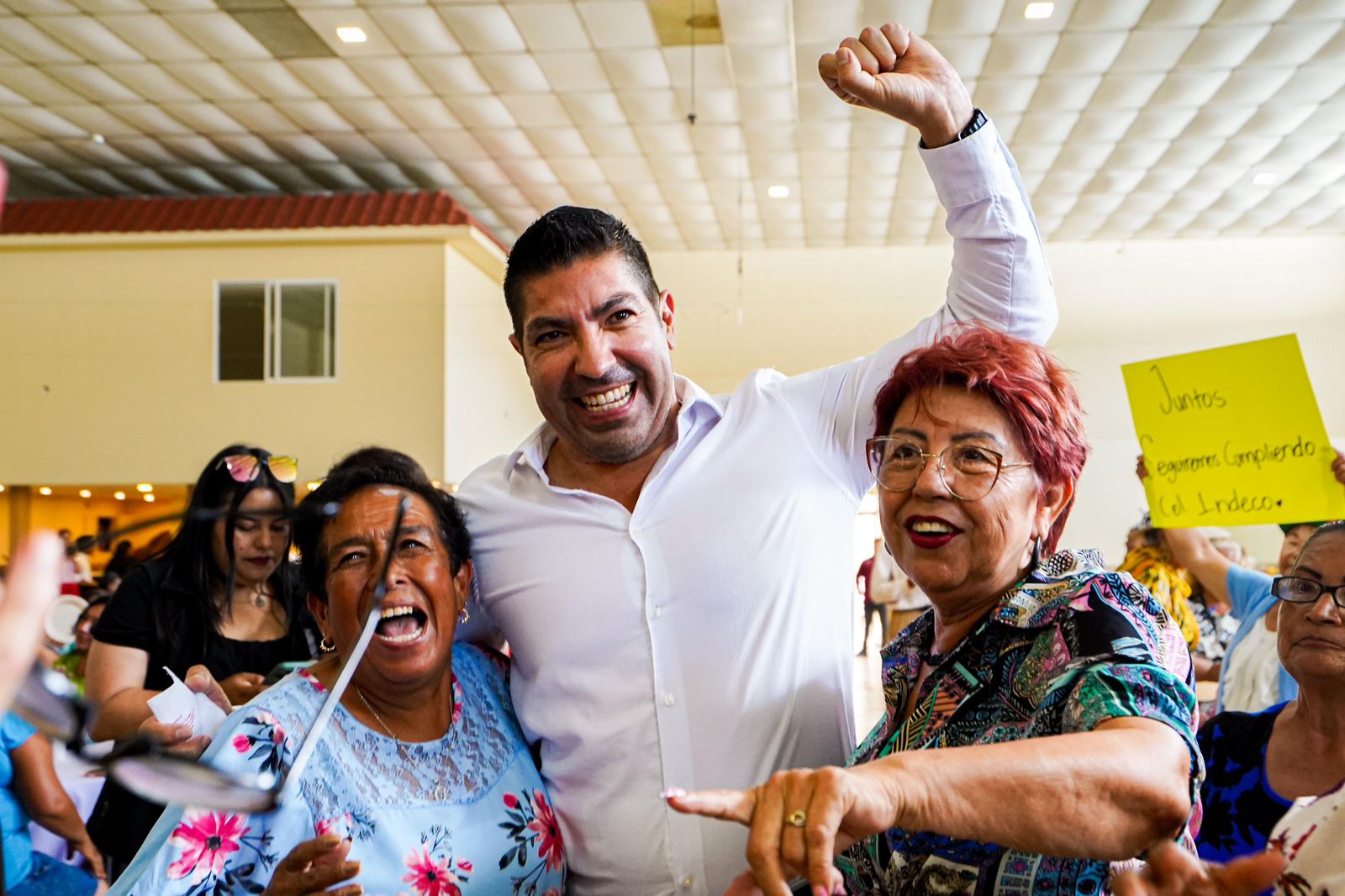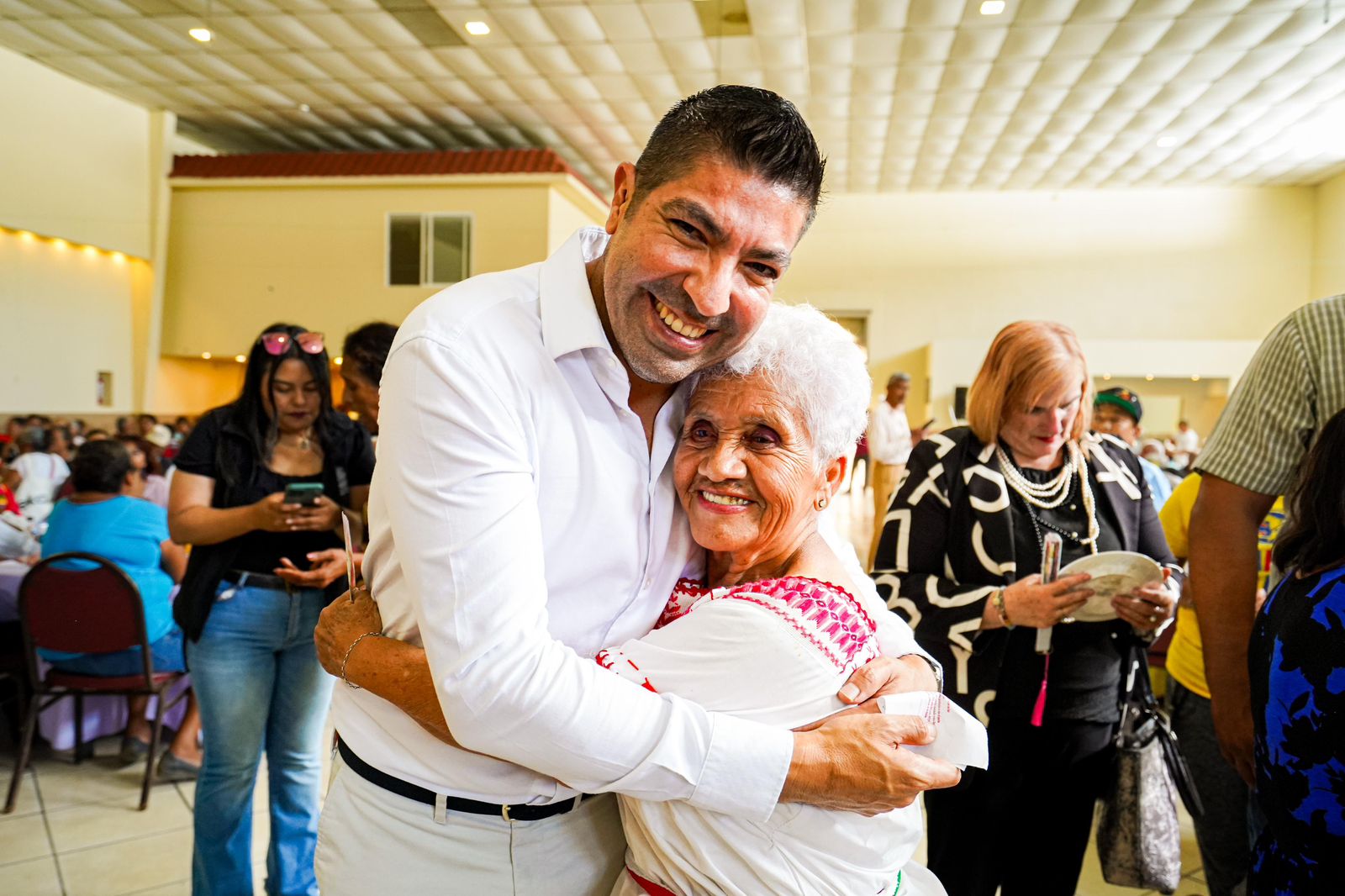 • También agradeció a personas adultas mayores por su labor durante una reunión en el salón Mutualista