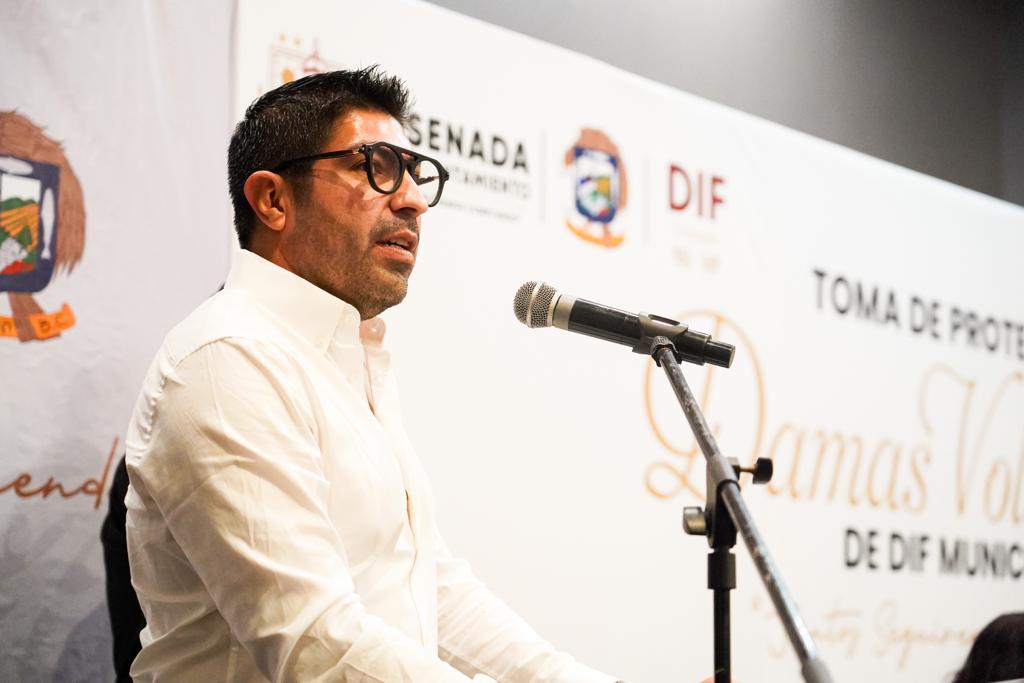 Ensenada B.C.- Miércoles 26 de julio de 2023.- Con un agradecimiento por su labor altruista y por sumar esfuerzos en favor de los grupos vulnerables, el presidente municipal, Armando Ayala Robles tomó protesta a las Damas Voluntarias de DIF Ensenada.