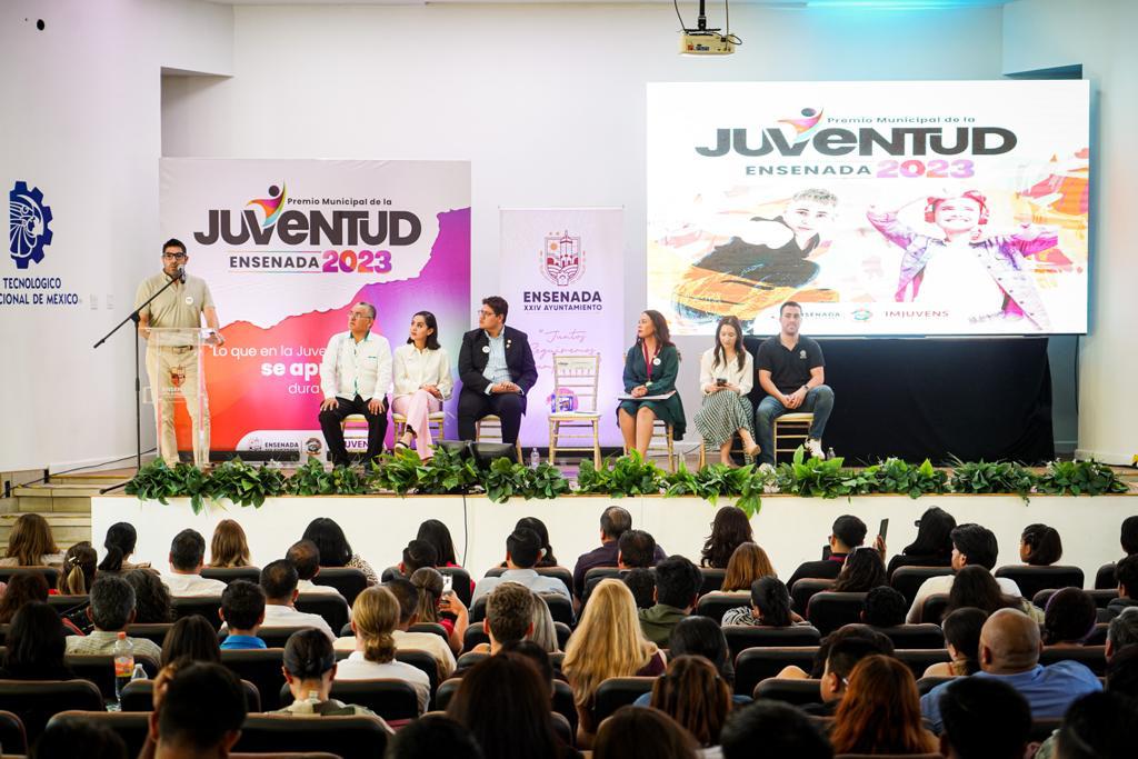 Ensenada, B. C.- Martes 29 de agosto de 2023.- Un total de nueve jóvenes ensenadenses, recibieron de manos del alcalde Armando Ayala Robles el Premio Municipal de la Juventud 2023, por su destacada labor en materia académica, emprendedora, de compromiso social, de fortalecimiento de la cultura indígena y de expresiones artísticas.