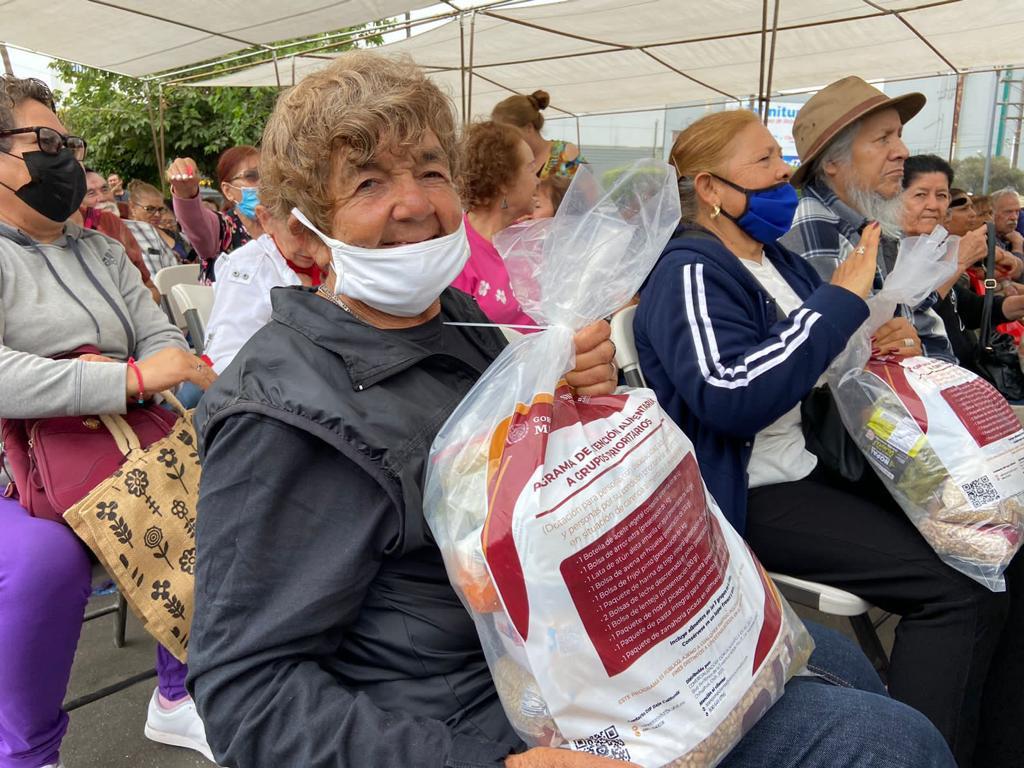 Indicó que en esta ocasión, se entregaron más de 400 apoyos alimentarios a las y los adultos mayores inscritos en el programa que reciben este apoyo de manera mensual para su bienestar.