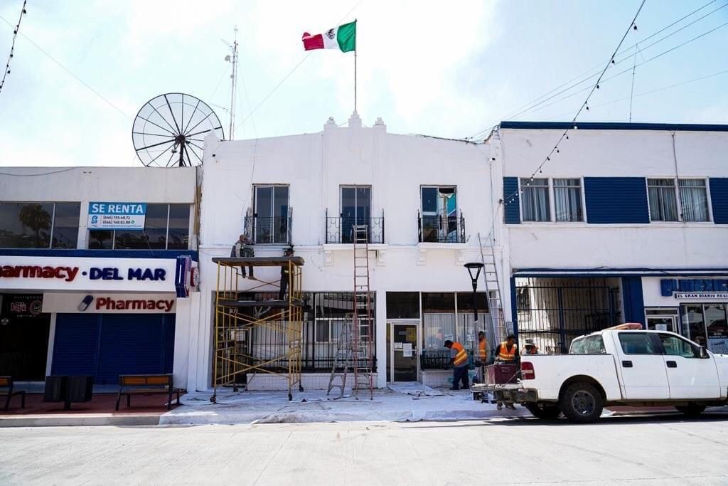 Armando Ayala consideró que el remozamiento de este edificio coadyuva con los trabajos que se realizan en la avenida Ruiz, como la construcción de fuentes tipo géiser y las bases para los bustos de los personajes pioneros de Ensenada.
