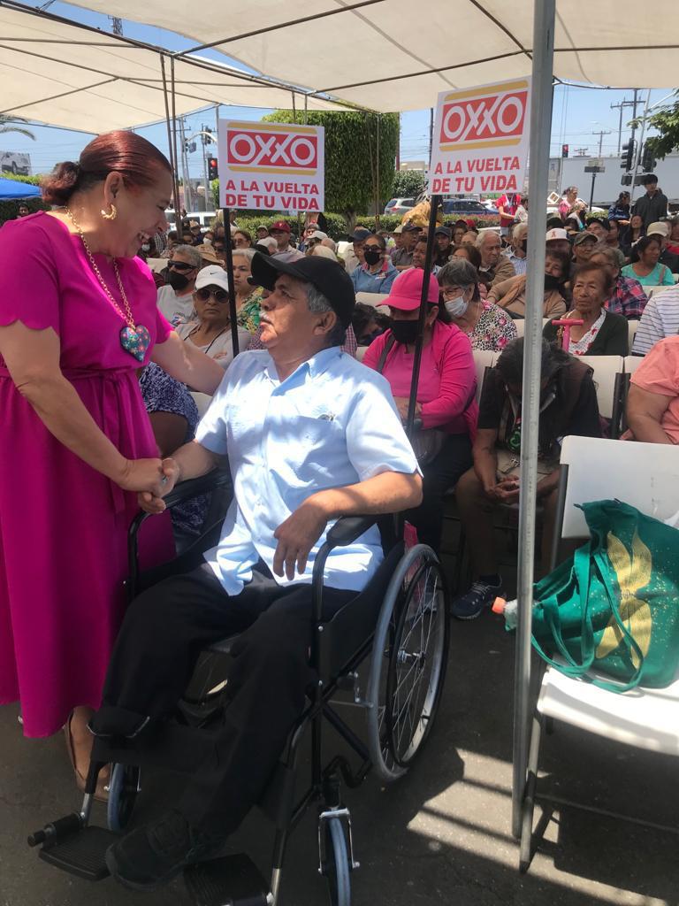 Ensenada B.C.- miércoles 28 de junio de 2023.- El gobierno municipal a través del Sistema para el Desarrollo Integral de la Familia, (DIF Ensenada), y Cadena OXXO, llevaron a cabo feria de servicios para el adulto mayor con la entrega de apoyos sociales, con una inversión de 250 mil pesos.