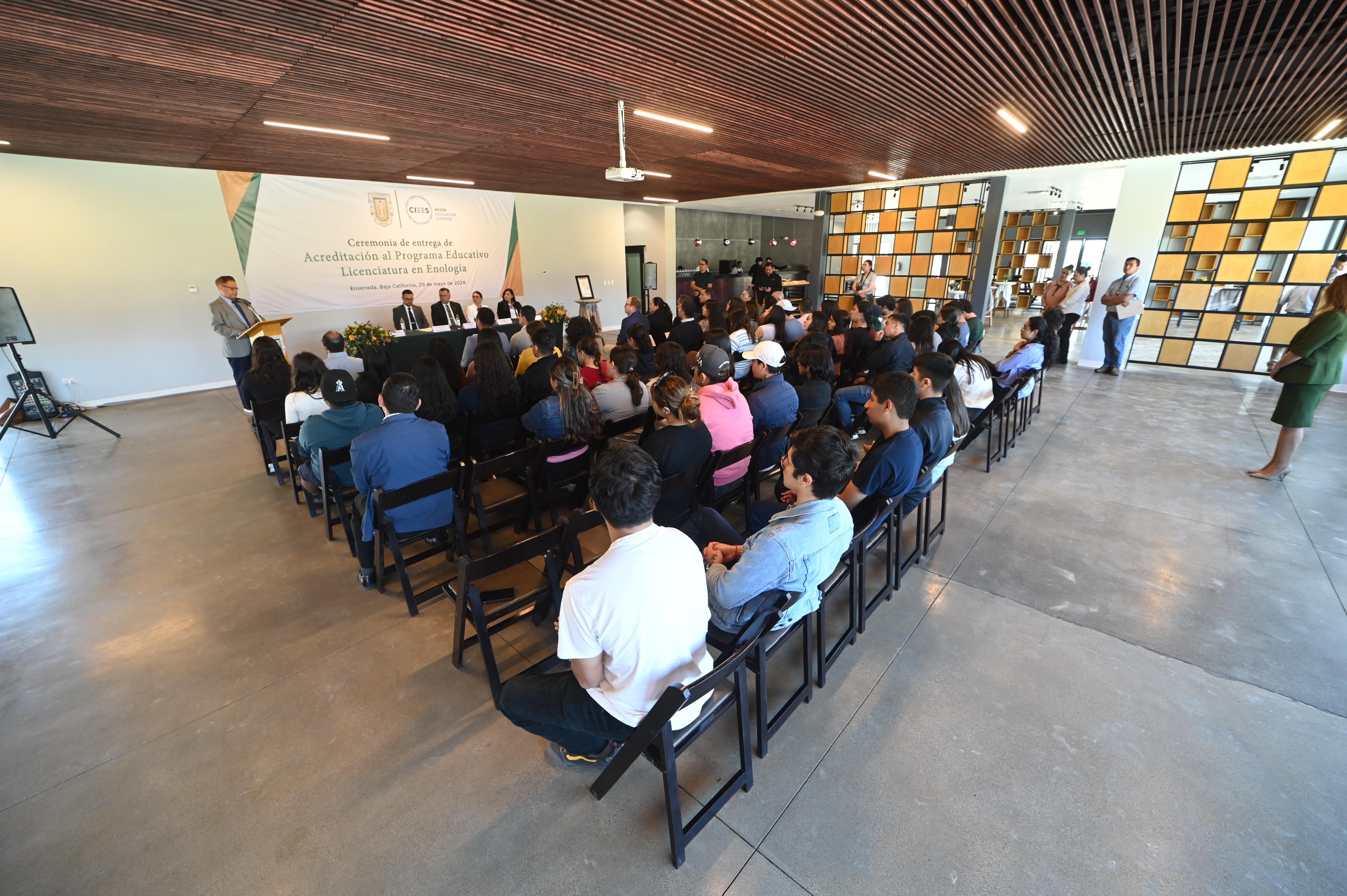Ensenada, Baja California, miércoles 29 de mayo de 2024.- En ceremonia celebrada el martes 29 de mayo en las instalaciones de la Unidad El Porvenir, la Universidad Autónoma de Baja California (UABC) recibió, por parte de los Comités Interinstitucionales para la Evaluación de la Educación Superior (CIEES), la acreditación de la calidad del programa educativo de la licenciatura en Enología que se imparte en la Facultad de Enología y Gastronomía (FEG).