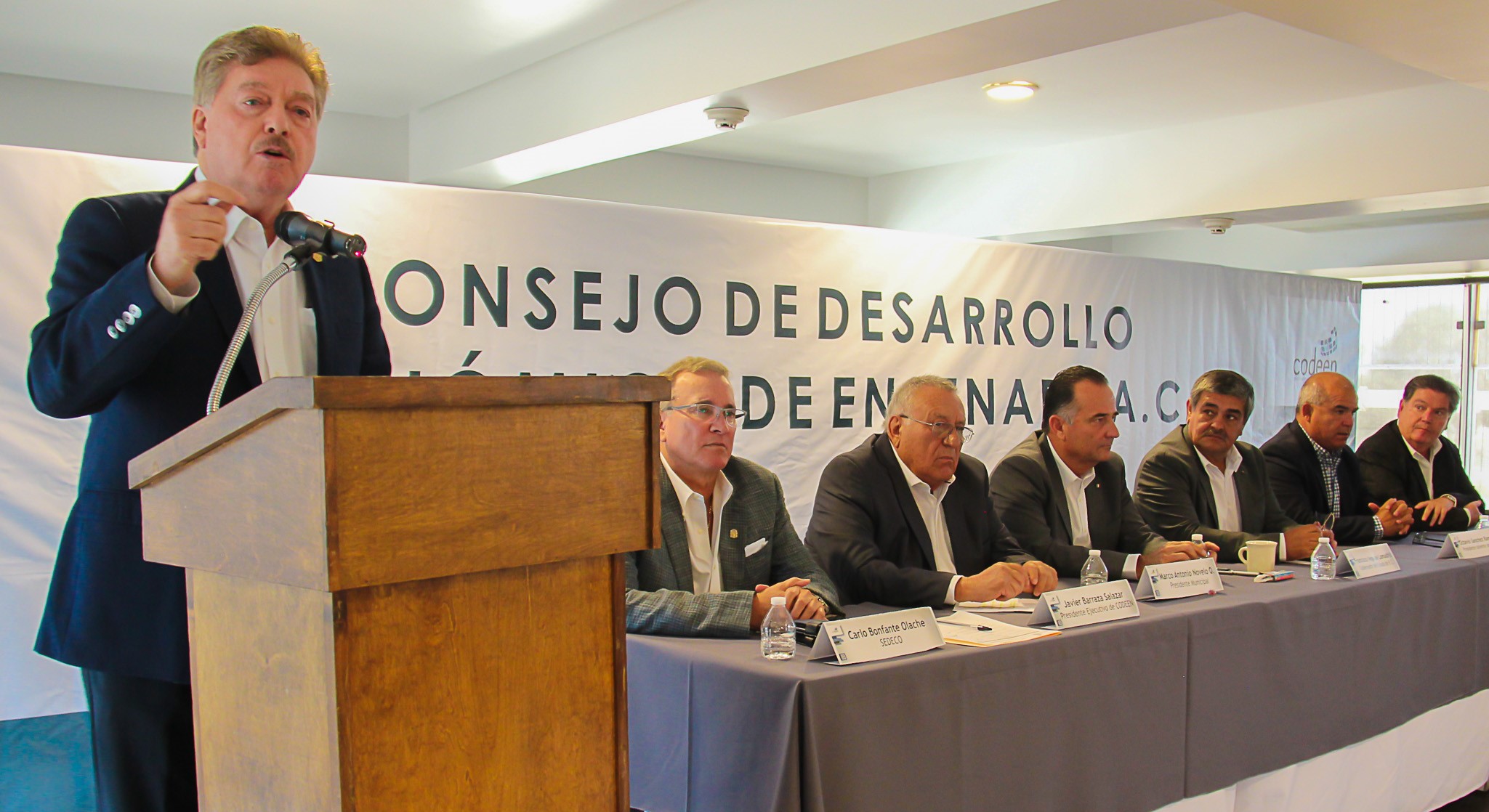 Durante el evento estuvieron presentes el Presidente Municipal del XXII Ayuntamiento de Ensenada, Marco Antonio Novelo Osuna; el Presidente del Consejo Coordinador Empresarial de Ensenada, Marco Antonio Coronado; el Secretario de Desarrollo Económico del Estado, Carlo Humberto Bonfante Olache; el Secretario de Infraestructura y Desarrollo Urbano del Estado, Alfonso Padrés Pesqueira.