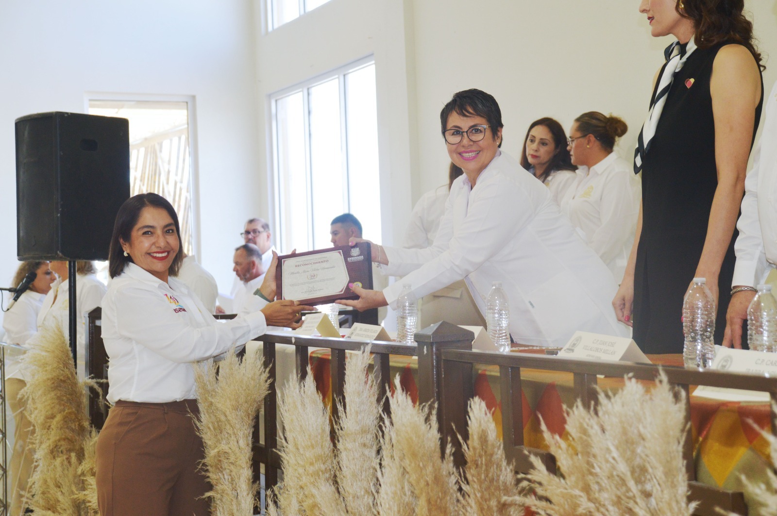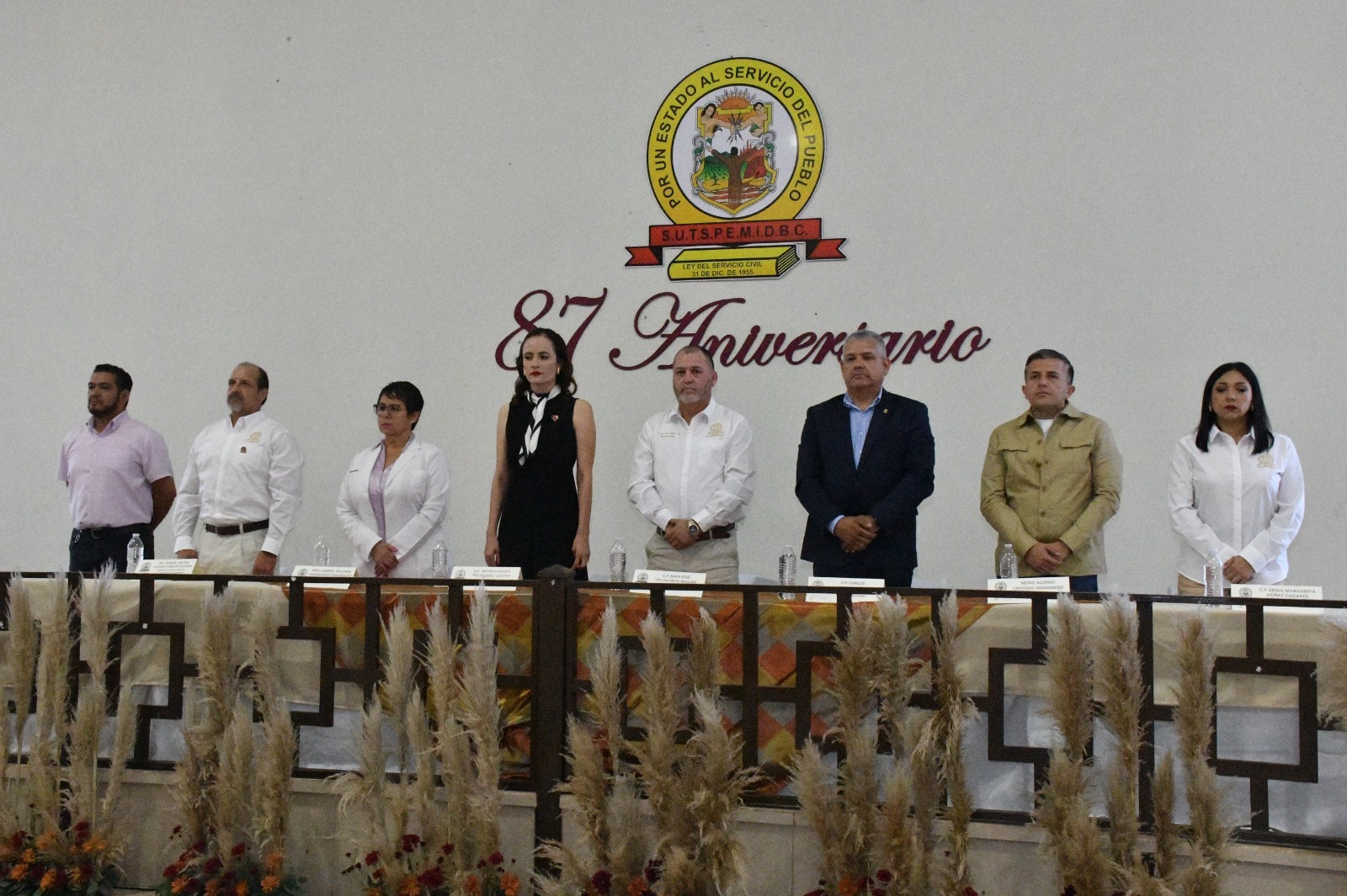 Estuvieron en el presidium, Mónica María Velázquez Castro es la delegada de la Oficialía Mayor de Baja California en Ensenada; Armida Yolanda Hernández Hernández, directora del Issstecali en Ensenada; Alonso Centeno Hernández, director de CESPE, así como los representantes del área de conflictos y organización del sindicato local.