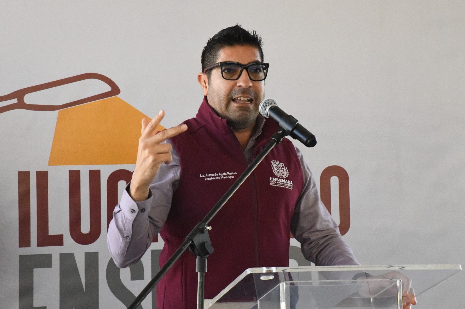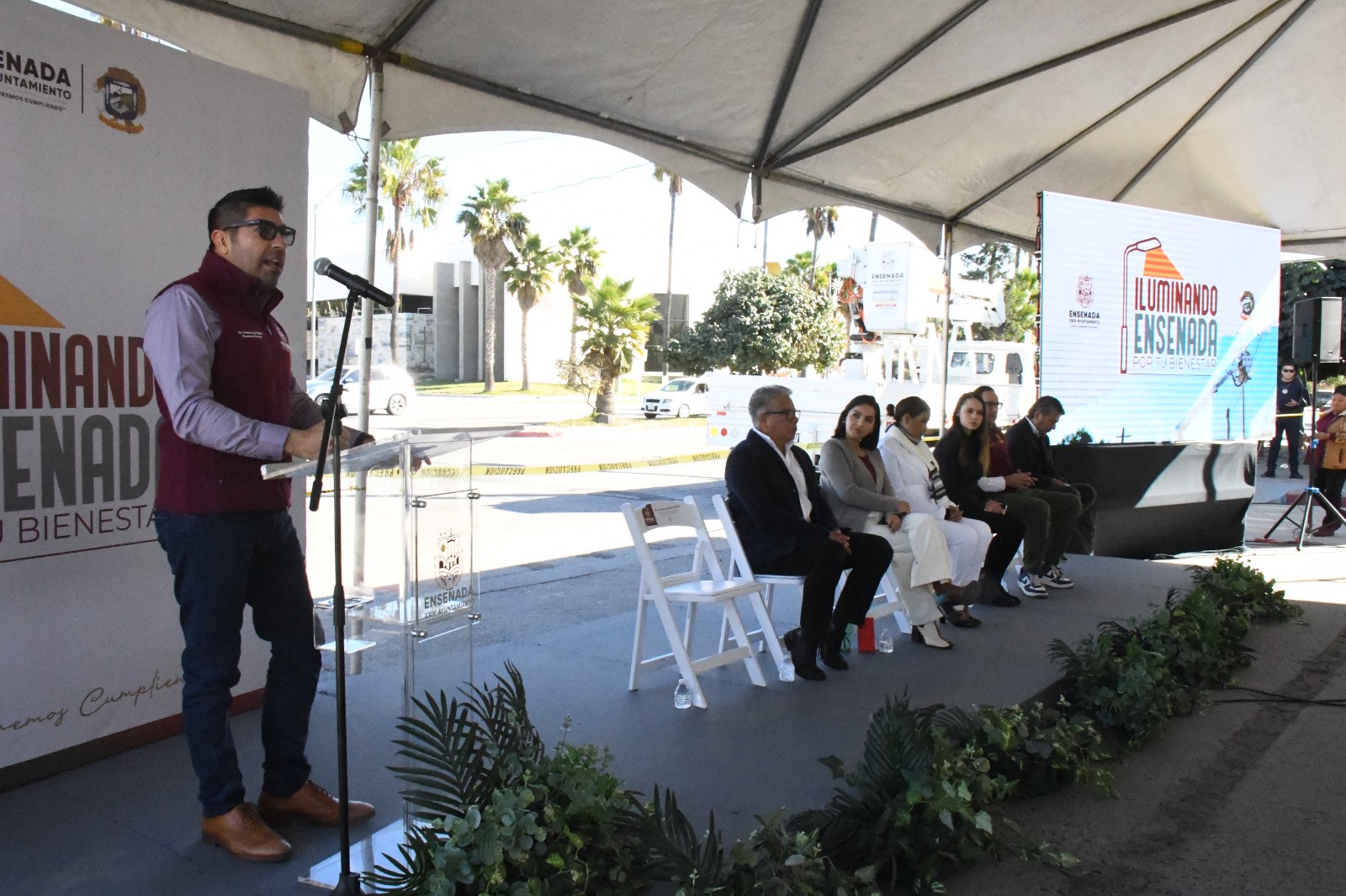Ensenada, B. C.- Martes 12 de diciembre de 2023.- Con la encomienda de sustituir más de 27 mil 500 luminarias y mantener en funcionamiento al menos el 95% del alumbrado público, el presidente municipal Armando Ayala Robles, encabezó la presentación de Iluminando Ensenada, por tu Bienestar.