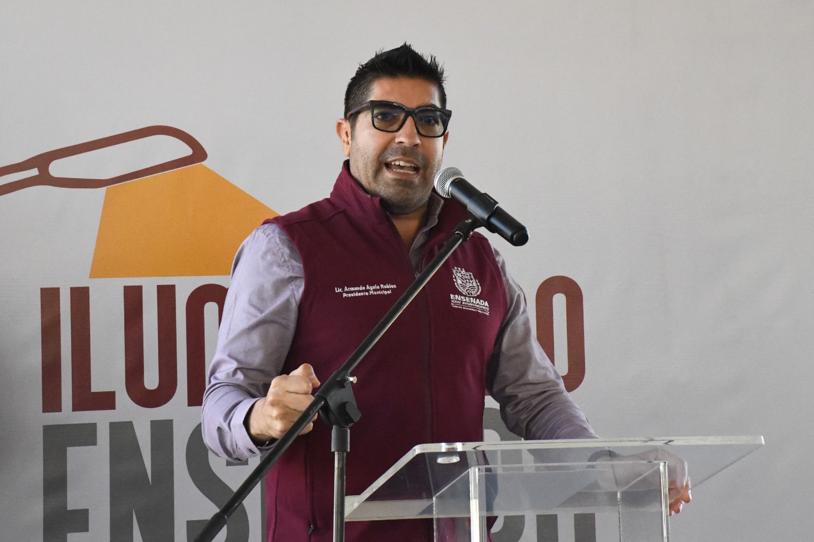 Ensenada, B. C.- Martes 12 de diciembre de 2023.- Con la encomienda de sustituir más de 27 mil 500 luminarias y mantener en funcionamiento al menos el 95% del alumbrado público, el presidente municipal Armando Ayala Robles, encabezó la presentación de Iluminando Ensenada, por tu Bienestar.