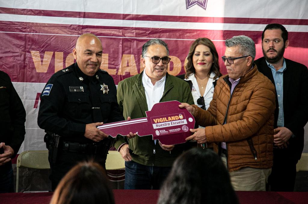 De manera simbólica, las autoridades educativas hicieron entrega de “las llaves” de las escuelas a los distintos organismos de Seguridad Pública, así como al ciudadano Víctor García Leyva, quien es vecino de la comunidad en el ejido Nuevo Baja California.