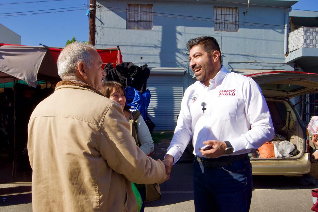 El senador Armando Ayala Robles realizó un recorrido por el tianguis de La Aurora, en Mexicali, donde tuvo la oportunidad de saludar a las y los comerciantes, escuchar sus inquietudes y dialogar de manera directa sobre las necesidades que enfrentan en su actividad diaria.