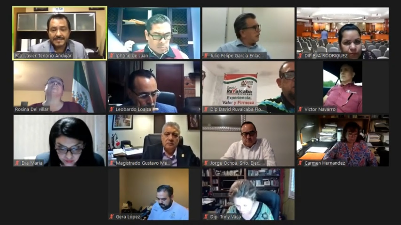 En la sesión virtual de la Comisión de Gobernación estuvieron presentes sus diputados integrantes Juan Manuel Molina García, presidente; Rosina del Villar Casas, secretaria, y los vocales Julia Andrea González Quiroz, Gerardo López Montes, Víctor Hugo Navarro Gutiérrez y Eva Gricelda Rodríguez.