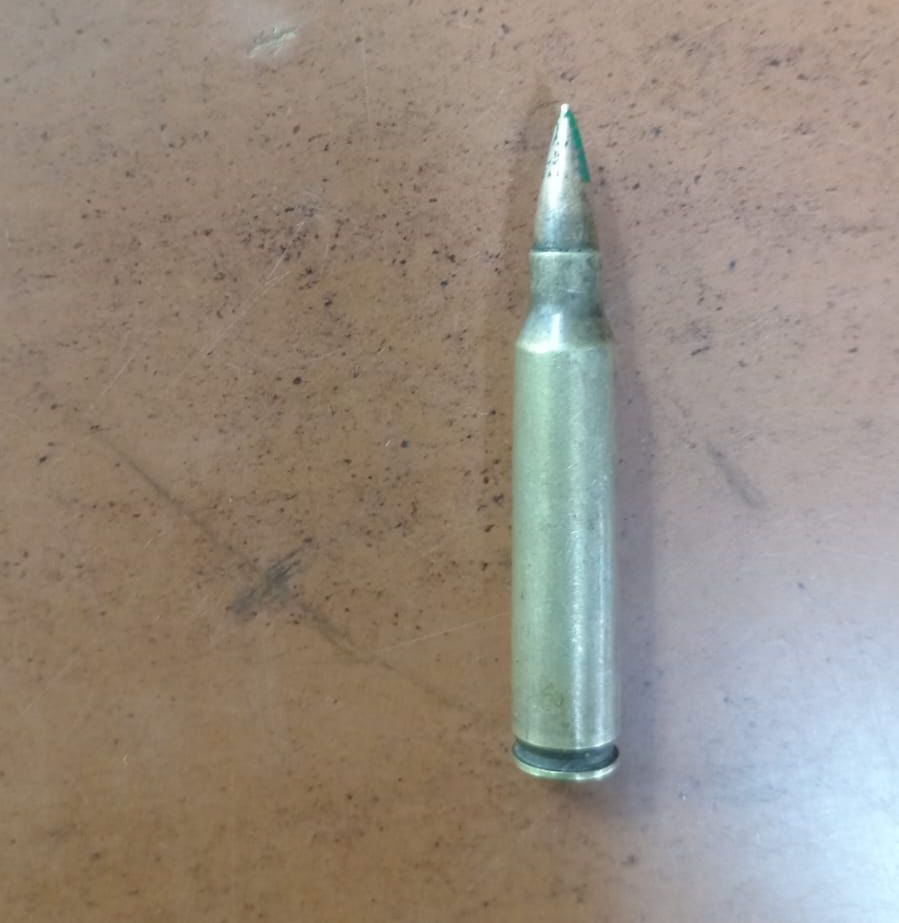 Tras la revisión de las pertenencias se le localizó un cartucho calibre 5.56, el cual se encuentra clasificado como de uso exclusivo del Ejército Mexicano, razón por la que se notificó de la detención, trasladándolo a las instalaciones de la Subcomandancia Zona Oriente en donde se realizaron los trámites legales para la puesta a disposición de la autoridad correspondiente.