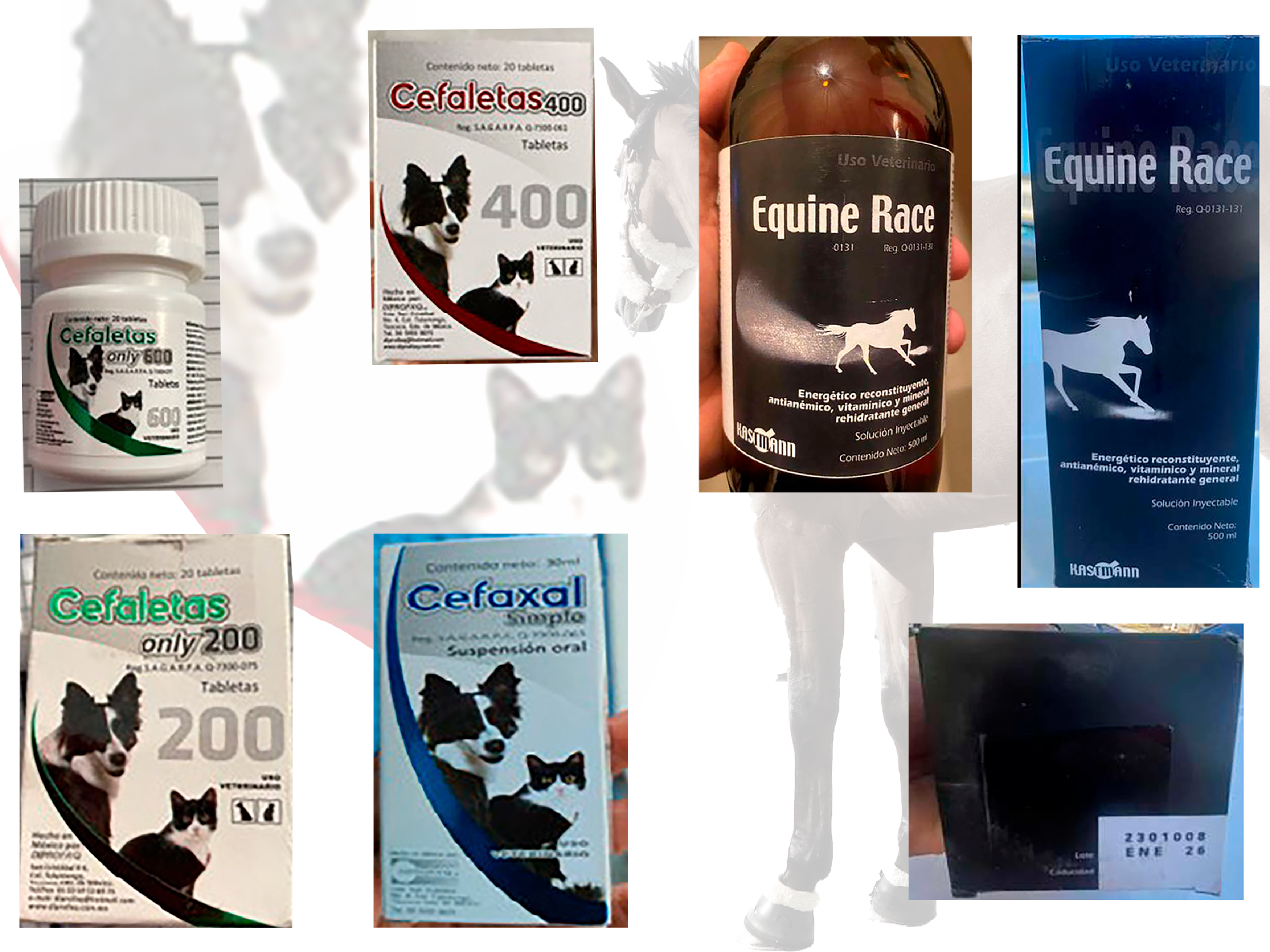 ● Senasica emite alerta sanitaria por la venta irregular de la línea Cefaletas, Cefaxal simple y del lote 2301008 de Equine Race (uso animal), por carecer de registro o no ser reconocido por el laboratorio titular