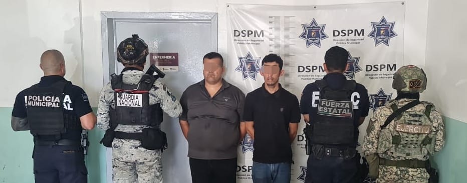 En el lugar fueron detenidos Gabriel «N», de 47 años de edad, y Brayan Nicolás «N», de 28. Ambos fueron trasladados para su turnación ante las autoridades correspondientes.