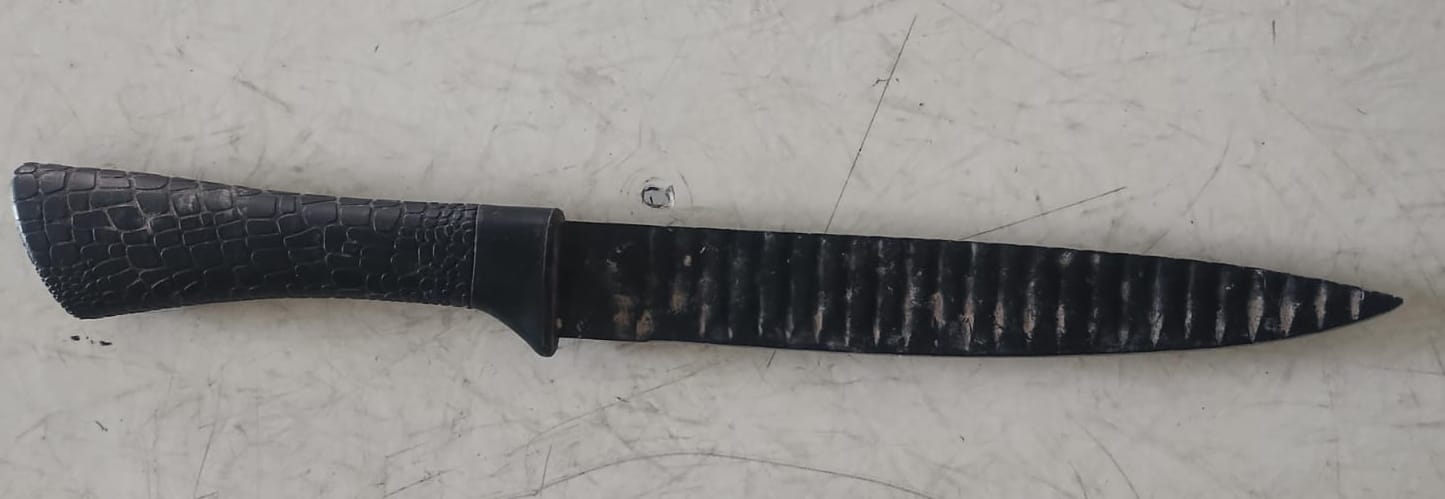 Los oficiales implementaron un operativo de búsqueda hasta localizar a un sujeto que coincidía con la descripción, mismo que fue interceptado en el cruce de las calles Islas Canarias e Islas Malvinas, en el fraccionamiento Jardines del Lago. Durante la inspección se le localizó un cuchillo, siendo detenido por el delito de arma prohibida.