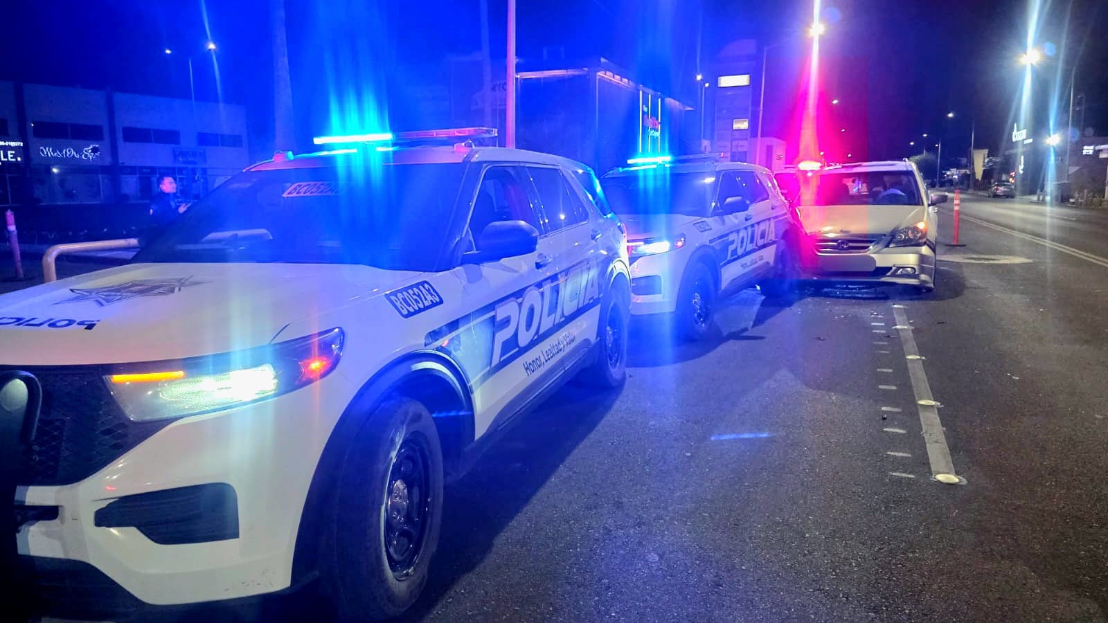 Los hechos ocurrieron sobre la calzada Aviación, casi en el cruce con la calle Buenos Aires, sobre la circulación de poniente a oriente. Fue ahí donde el conductor de una camioneta Honda Odysey de color gris, modelo 2006 con placas de California, perdió el control e impactó por alcance dos patrullas estacionadas con códigos encendidos sobre el carril derecho de la vialidad.