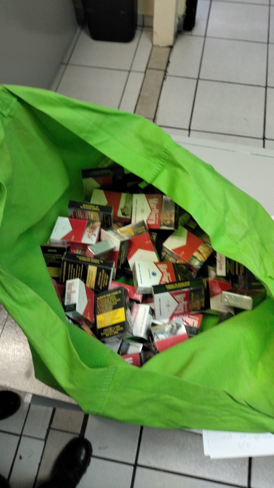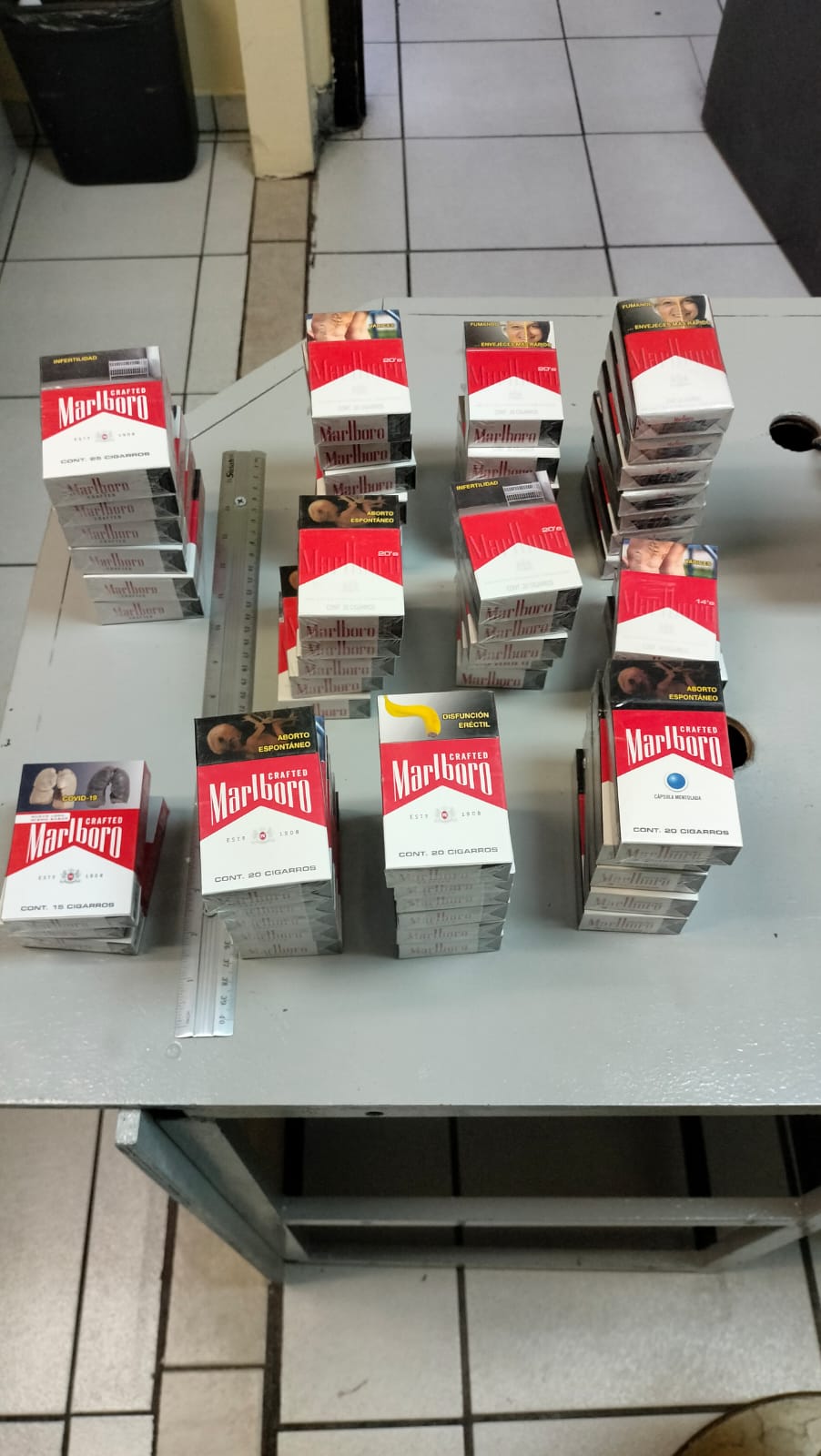 Al llegar los oficiales al lugar, se percataron que una cortina metáila y el vidrio de la ventanilla de dicho negocio se encontraban totalmente dañados y abiertos. En el interior observaron a dos sujetos que presuntamente estaban cometiendo un robo; pues se les aseguró una bolsa verde en la que habían introducido un total de 58 cajetillas de cigarros de diferentes marcas.