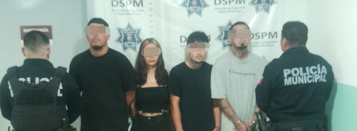 Los asegurados fueron identificados como Gibrán Alejandro “N”, de 18 años de edad; Juan Carlos “N”, de 28; Juan Francisco “N”, de 29; y Karla Yadira “N”, de 31 años. Todos fueron trasladados a la comandancia para finalmente ser turnados ante las autoridades correspondientes.