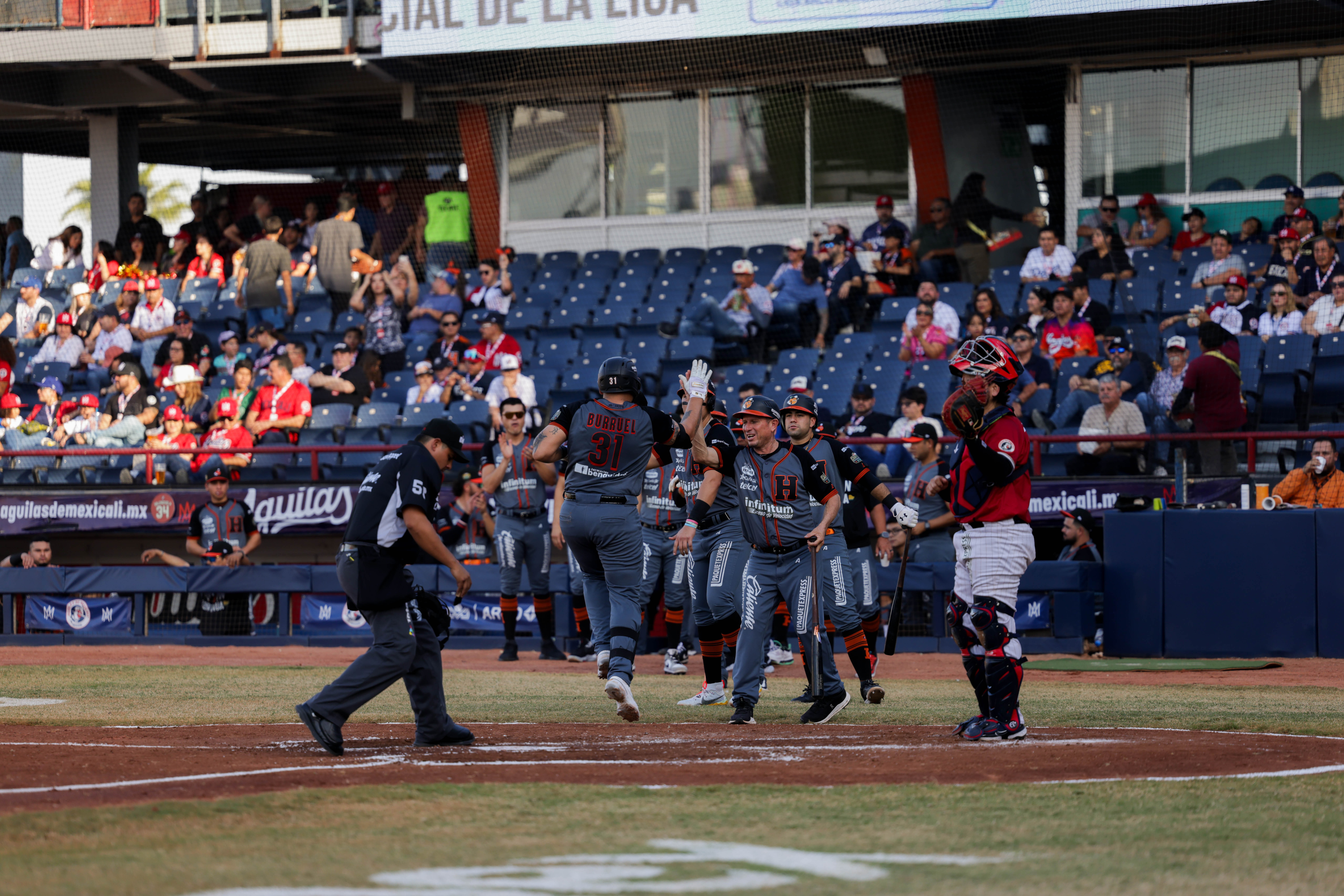 Mexicali, Baja California, 27 de octubre. El Nido de Los Águilas. En un emocionante juego que se definió en entradas extras, los Naranjeros de Hermosillo se llevaron el último encuentro de la serie en el Nido de los Águilas con un marcador de 5 carreras a 4 sobre los Emplumados, en la Serie Fernando “El Toro” Valenzuela.