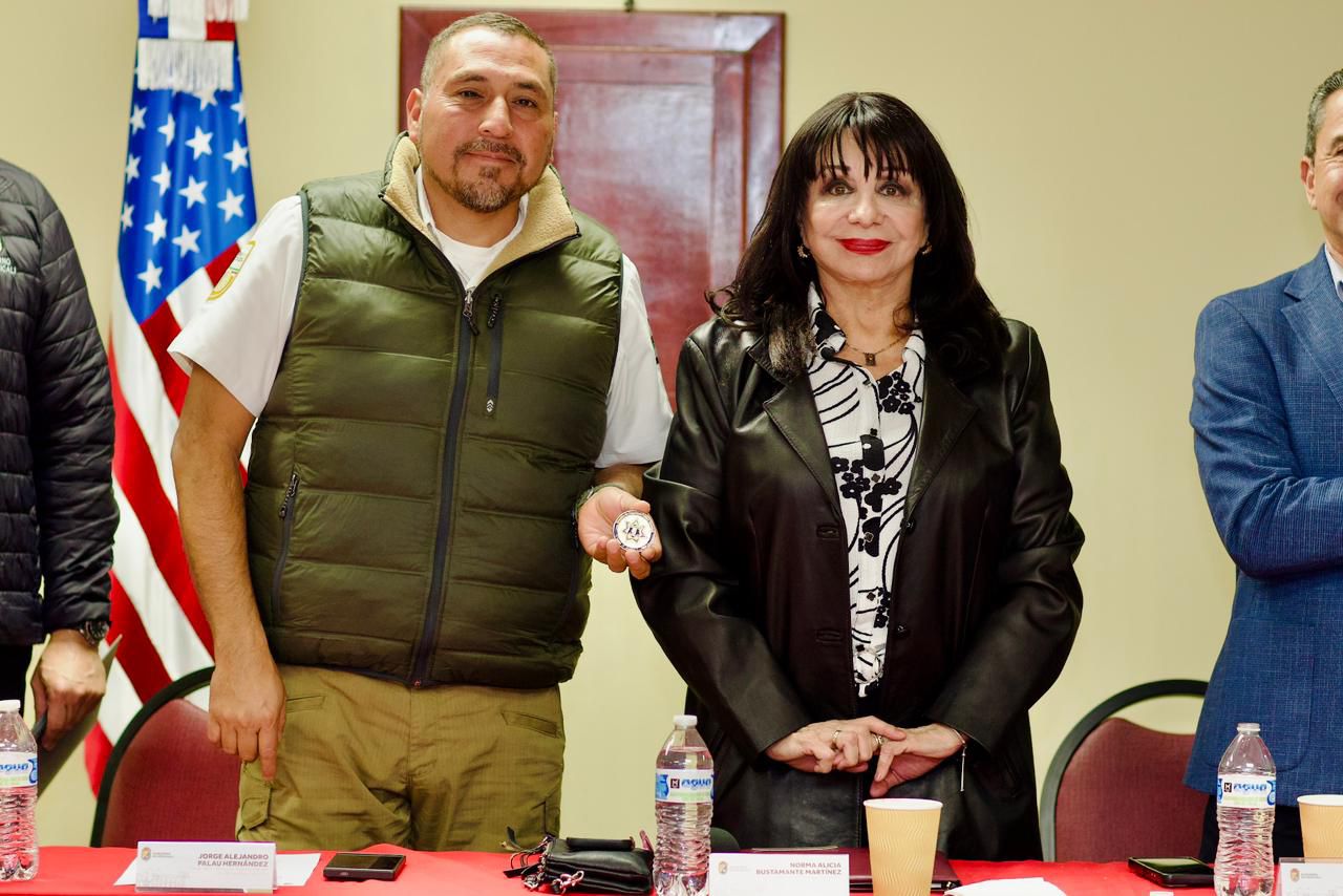 Uniendo esfuerzos por fortalecer la seguridad binacional, la alcaldesa de Mexicali, Norma Bustamante, junto al director de la Policía Municipal, Luis Felipe Chan, se reunió con autoridades estadounidenses y corporaciones de seguridad de los tres niveles de gobierno, con el propósito de estrechar la coordinación estratégica y garantizar la tranquilidad en nuestra región fronteriza.