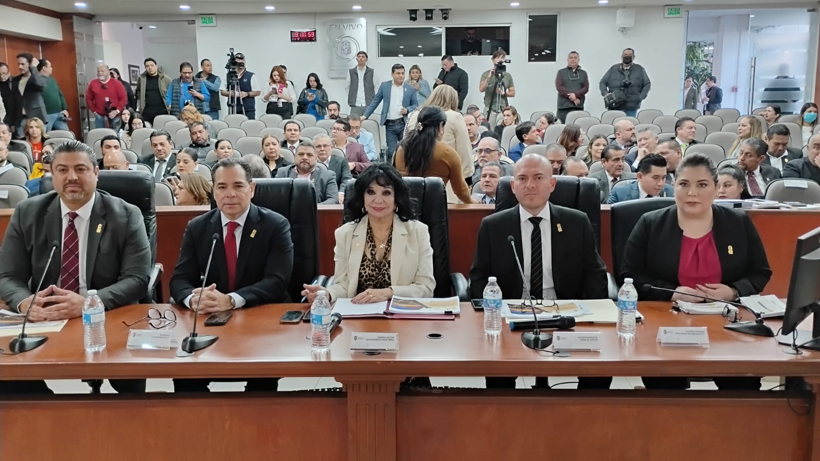 En la comparecencia, fue acompañada por el Tesorero Municipal, Roger Sosa Alafita, la Recaudadora, Bianca Miramontes Cervantes, el Secretario del Ayuntamiento, Rodrigo Llantada Ávila y el Director de Administración Urbana, Daniel Valenzuela Alcocer, quienes atendieron los cuestionamientos de los diputados.