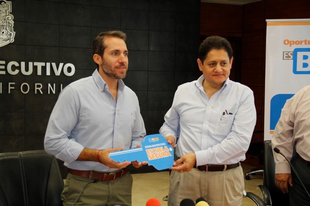 Resaltó el funcionario educativo “en esta ocasión entregaré al Director de Seguridad Pública Municipal de Mexicali, Alonso Ulises Méndez Manuell-Gómez, las llaves de los centros educativos ubicados en 120 zonas focalizadas de alto impacto, para realizar las acciones pertinentes (patrullaje, rondines, etc.) en la dirección a su cargo”.