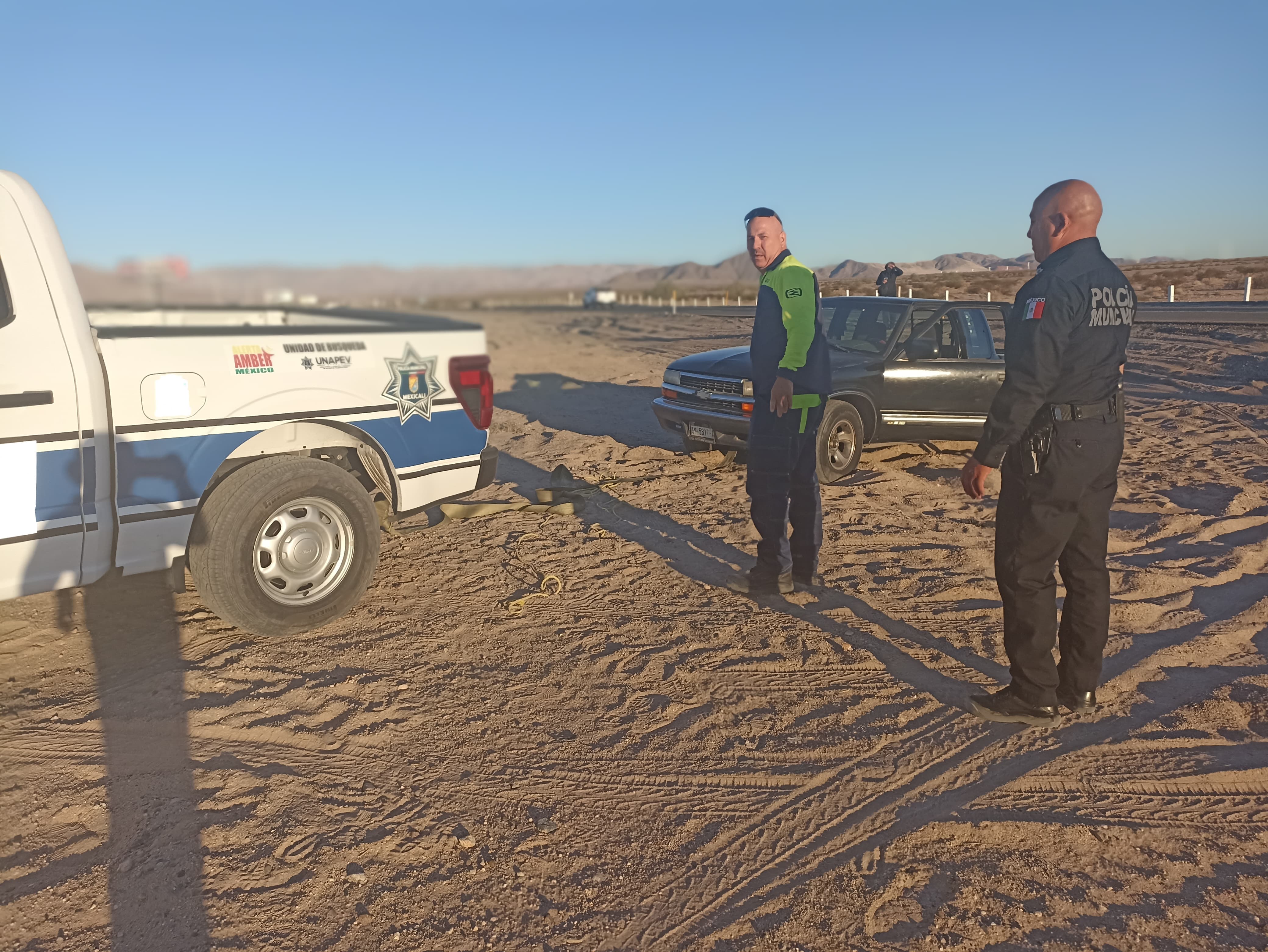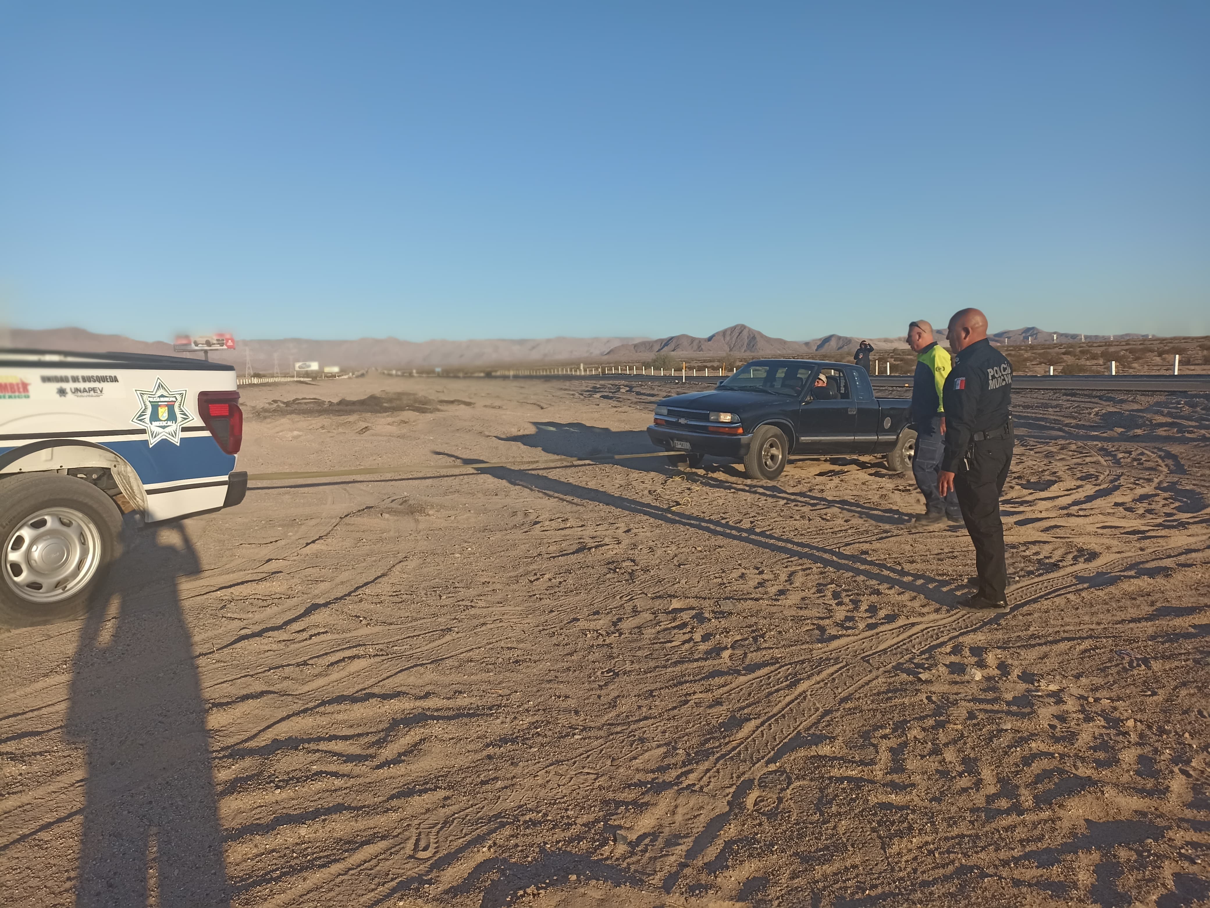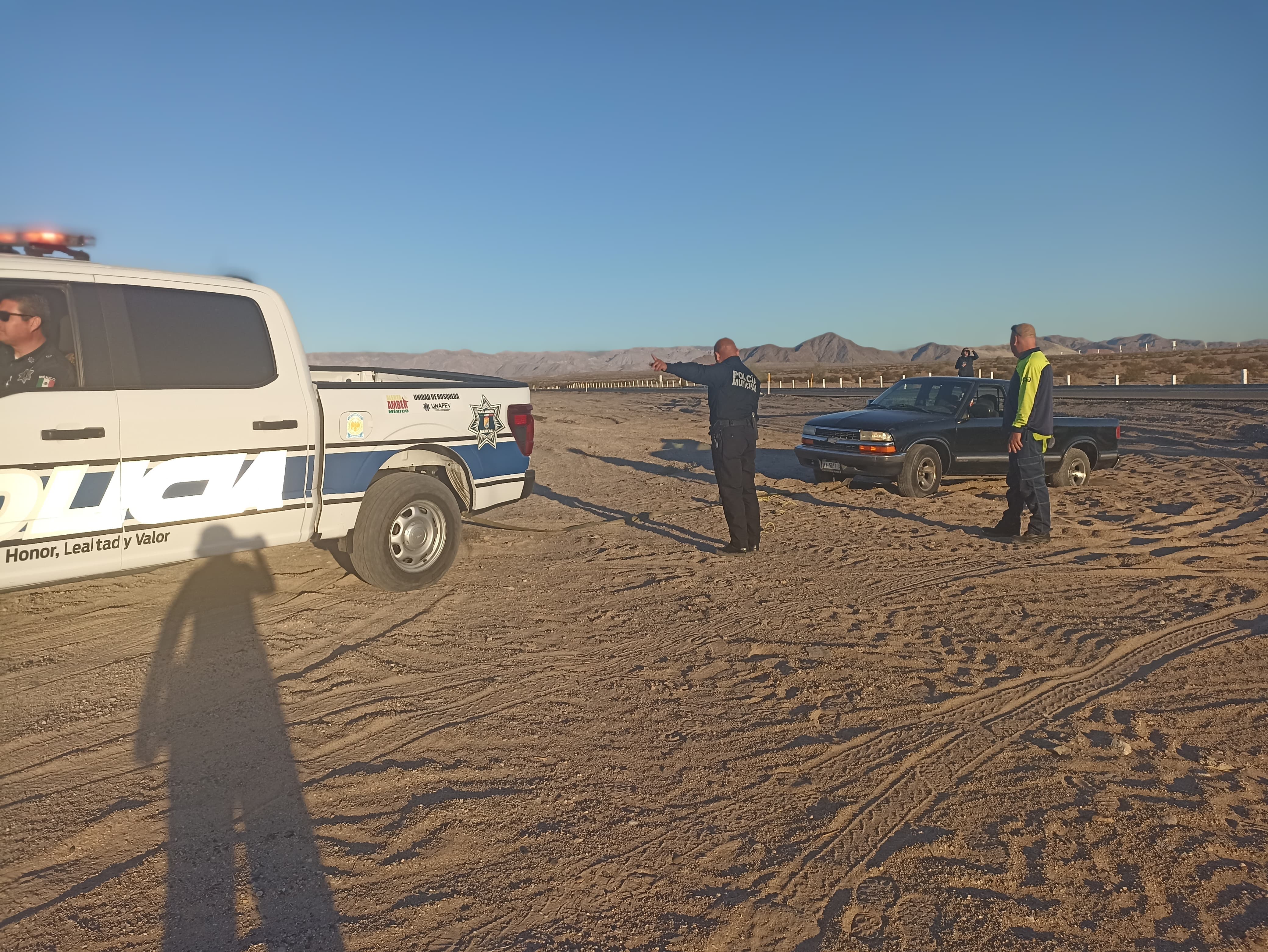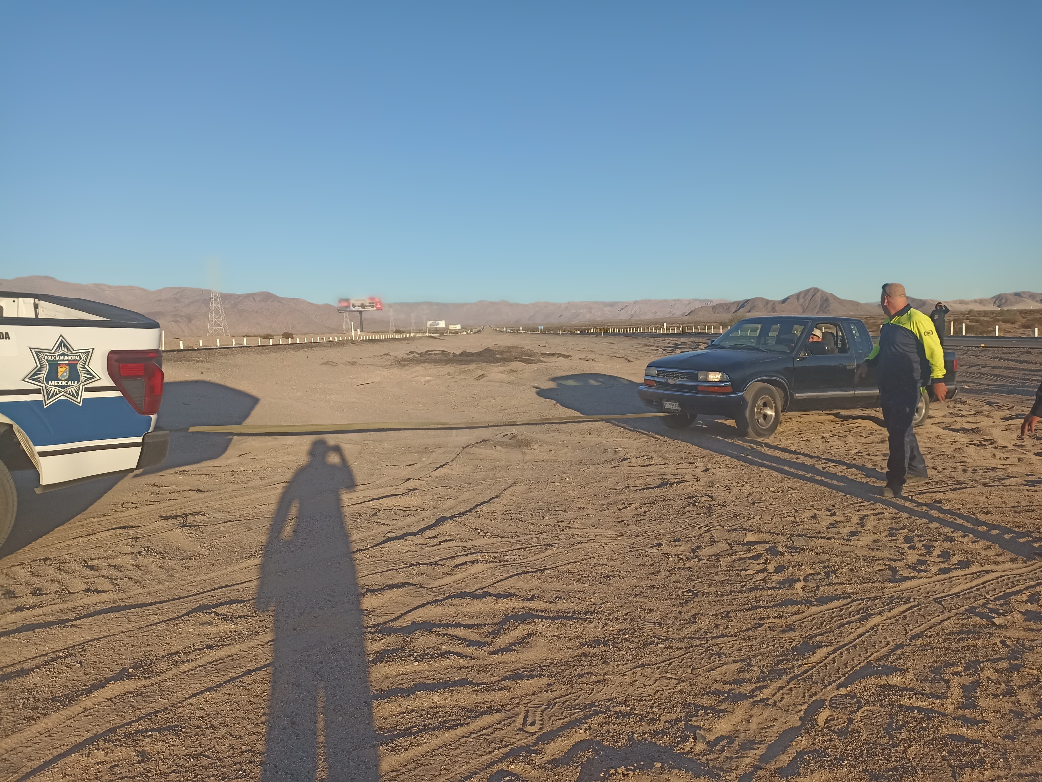 Fue alrededor de las 6:40 horas de este lunes cuando los elementos de la Policía Municipal se dirigían a un curso a la ciudad de Tecate, Baja California, y observaron a un hombre y una mujer que solicitaban auxilio, ya que su vehículo tipo pick up quedó atascado en una zona donde buscaron retornar.