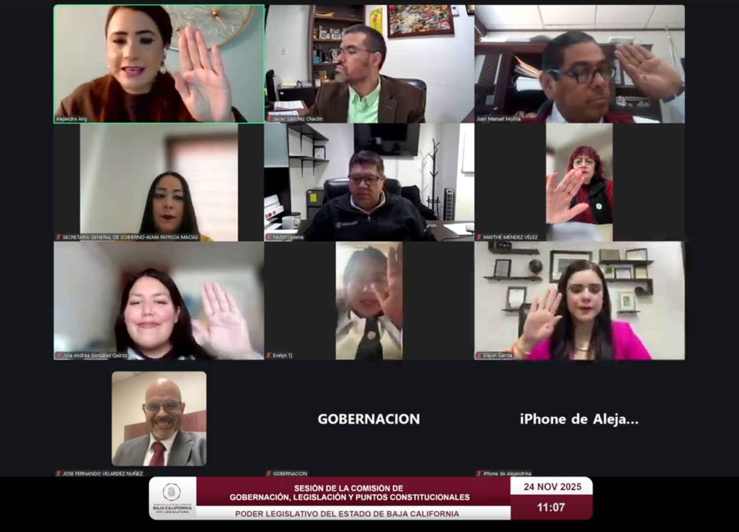 Mexicali, B.C., lunes 24 de noviembre de 2025.- En sesión ordinaria virtual, la Comisión de Gobernación, Legislación y Puntos Constitucionales, aprobó por unanimidad diversos proyectos de dictamen en materia de derechos humanos, movilidad con perspectiva de género, bienestar animal, protección al consumidor, fortalecimiento institucional y seguridad pública, además de iniciativas orientadas a garantizar la no discriminación para niñas, niños y adolescentes migrantes.