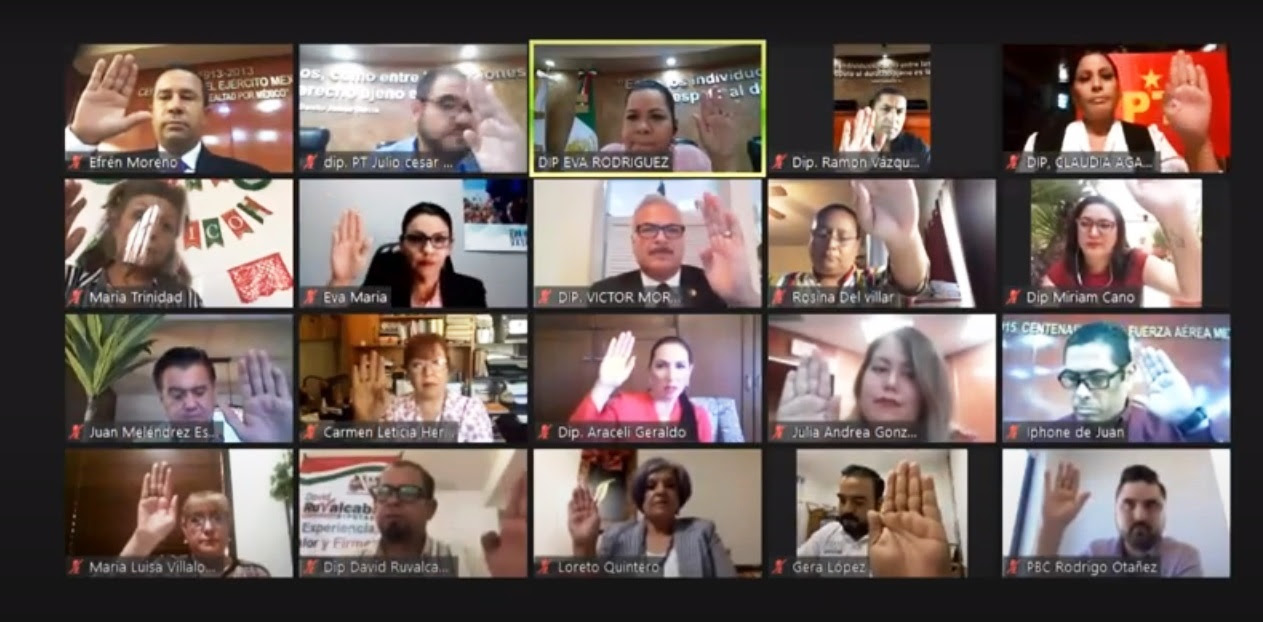 La sesión ordinaria correspondiente a esta fecha se celebró de manera virtual, en acatamiento a las disposiciones de sanidad, bajo la coordinación del diputado Julio César Vázquez Castillo, presidente de la Mesa Directiva del Congreso del Estado.