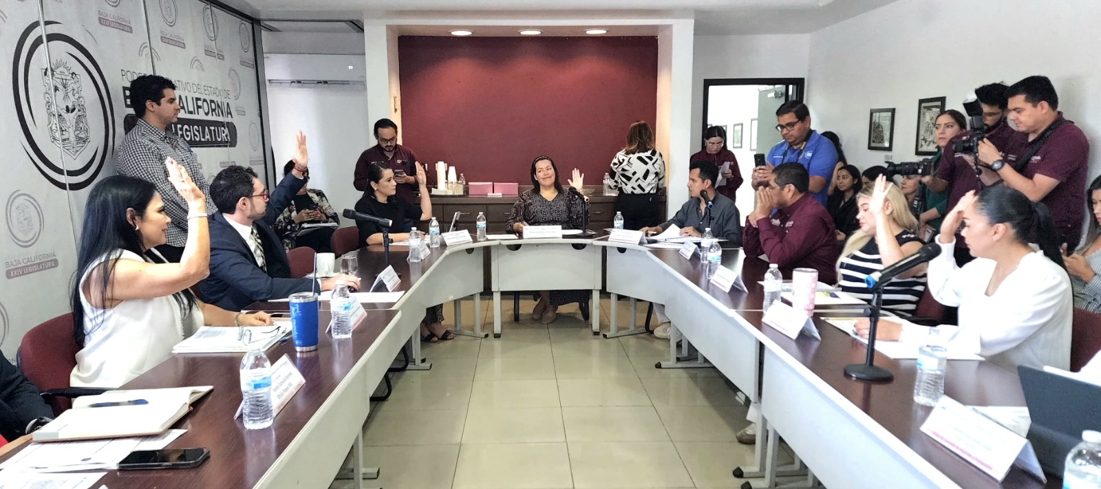 Fue avalado por votos nueve votos a favor, el proyecto que da origen al Dictamen No. 78 de la Iniciativa de Decreto para Desincorporar del Patrimonio de Dominio Público del Estado e Incorporar al Patrimonio del Dominio Privado del mismo, un predio identificado como lote destinado para el Hospital General, M-28 de la Col. Zona Rio Tijuana, para su enajenación a título gratuito en favor de Servicios de Salud del IMSS-Bienestar.