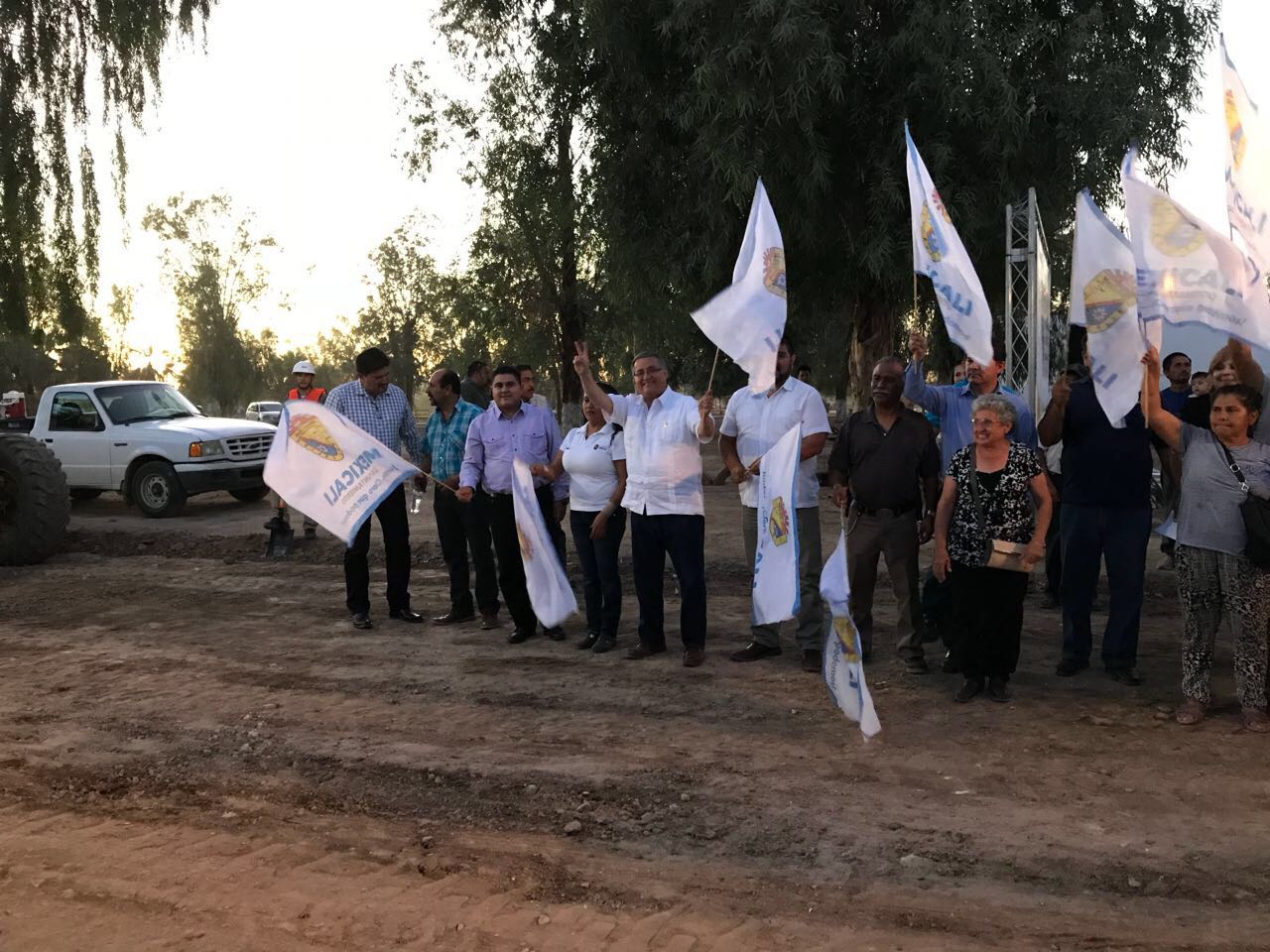 El Alcalde Gustavo Sánchez Vásquez, en compañía de Regidores y miembros de la comunidad dio el banderazo de obra de pavimento económico en Ciudad Guadalupe Victoria en el Valle de Mexicali.
