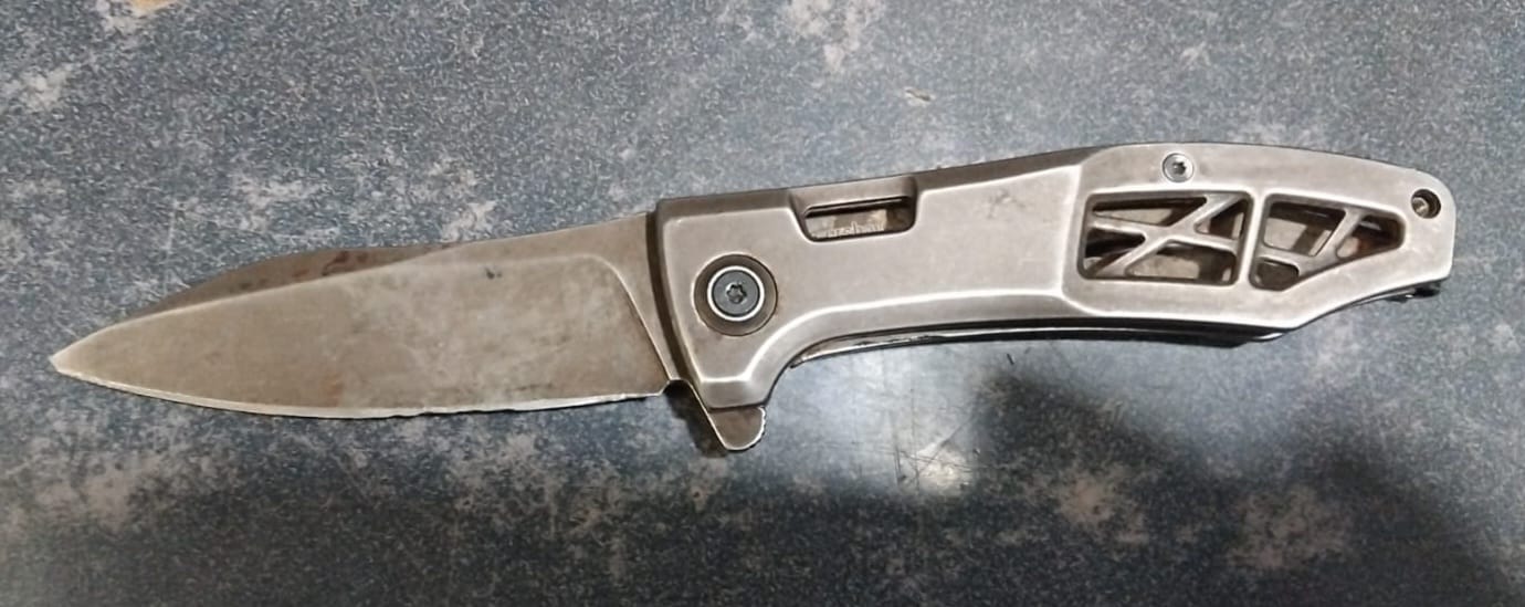 Acto seguido, los uniformados llevaron a cabo su intervención y le solicitaron una inspección corporal precautoria al sospechoso, mismo que accedió. Durante la revisión se le localizó una navaja con hoja metálica de color cromo y 15 centímetros de longitud, siendo detenido inicialmente por el delito de portación de arma prohibida.