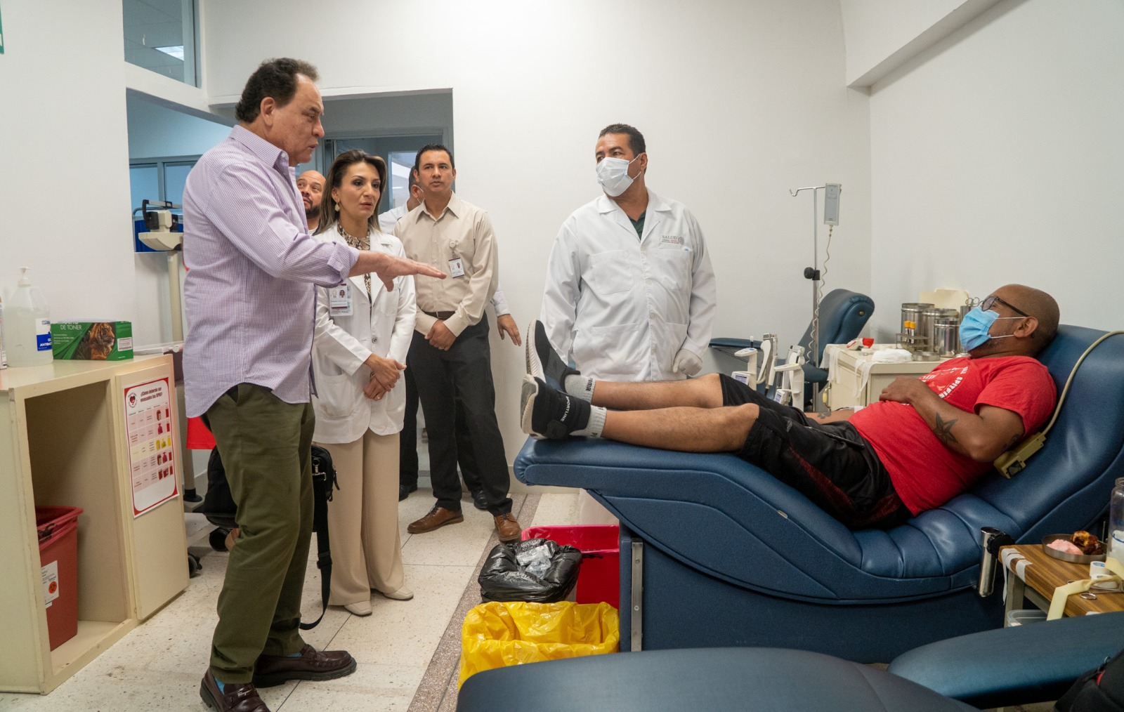 El secretario de Salud de Baja California, José Adrián Medina Amarillas, realizó un recorrido por esta área de atención, donde agradeció a las y los donantes de sangre por sumarse a la campaña permanente, ya que con esta acción se pueden salvar vidas.