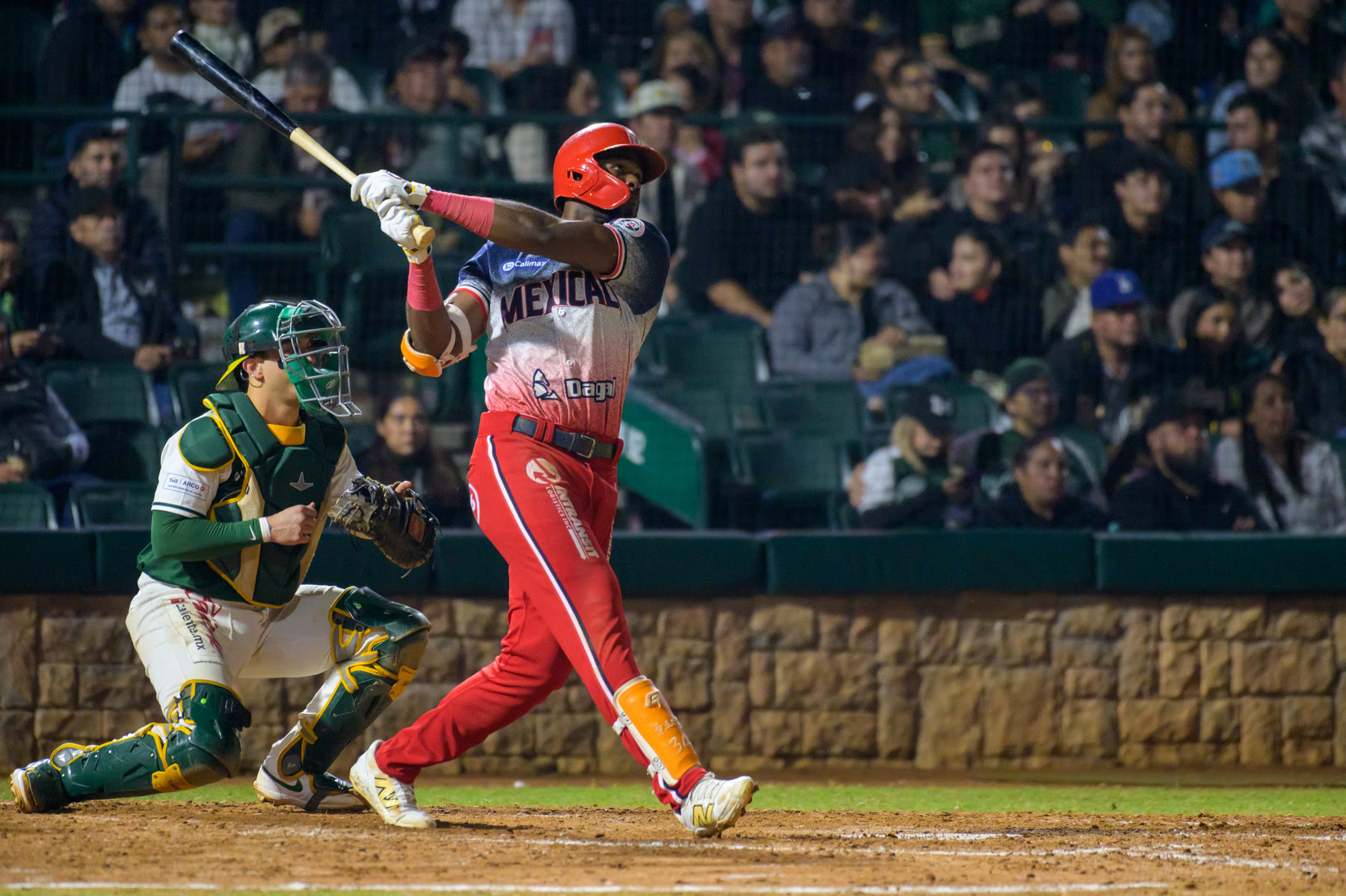 Los Mochis, Sinaloa, 20 de diciembre de 2025. Chevron Park. Batazo dentro del cuadro de Yurisbel Gracial produjo la carrera para romper el empate y darle la victoria a Cañeros de Los Mochis por marcador de 4 carreras a 3 sobre Los Águilas de Mexicali y con ello quedarse con la serie.