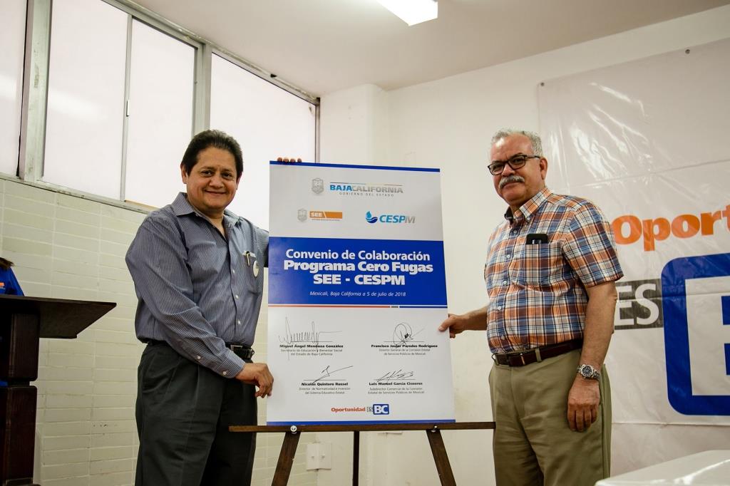 En este acto también se firmó un convenio entre el Sistema Educativo y la Comisión Estatal de Servicios Públicos de Mexicali para la Certificación, por parte de la Comisión, de Escuelas con cero fugas de agua.