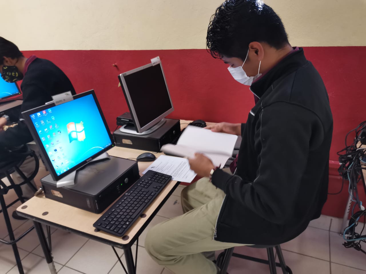 En ese sentido, la Dirección Académica diseñó una serie de estrategias adaptadas a las diferentes necesidades, tales como establecer horarios de atención en el plantel, en los que los alumnos pueden presentarse a trabajar en los equipos de cómputo organizados en distintos horarios, y también con el apoyo de productos sin conectividad ni dispositivos electrónicos, como las guías didácticas elaboradas por personal del Colegio.