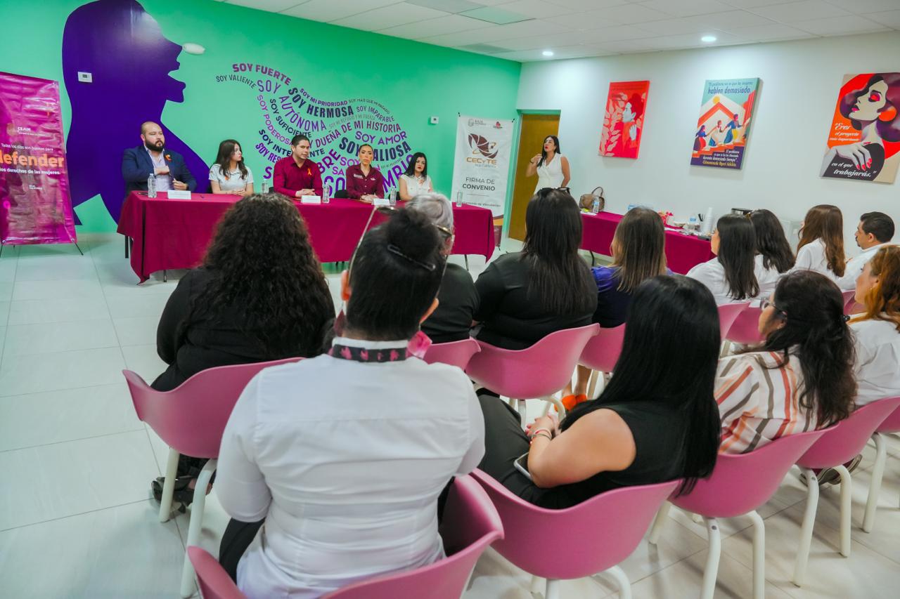 • Con este convenio la comunidad del CECyTE BC podrá acceder a servicios de orientación psicológica, asesoría jurídica, talleres y programas de prevención, entre otros.