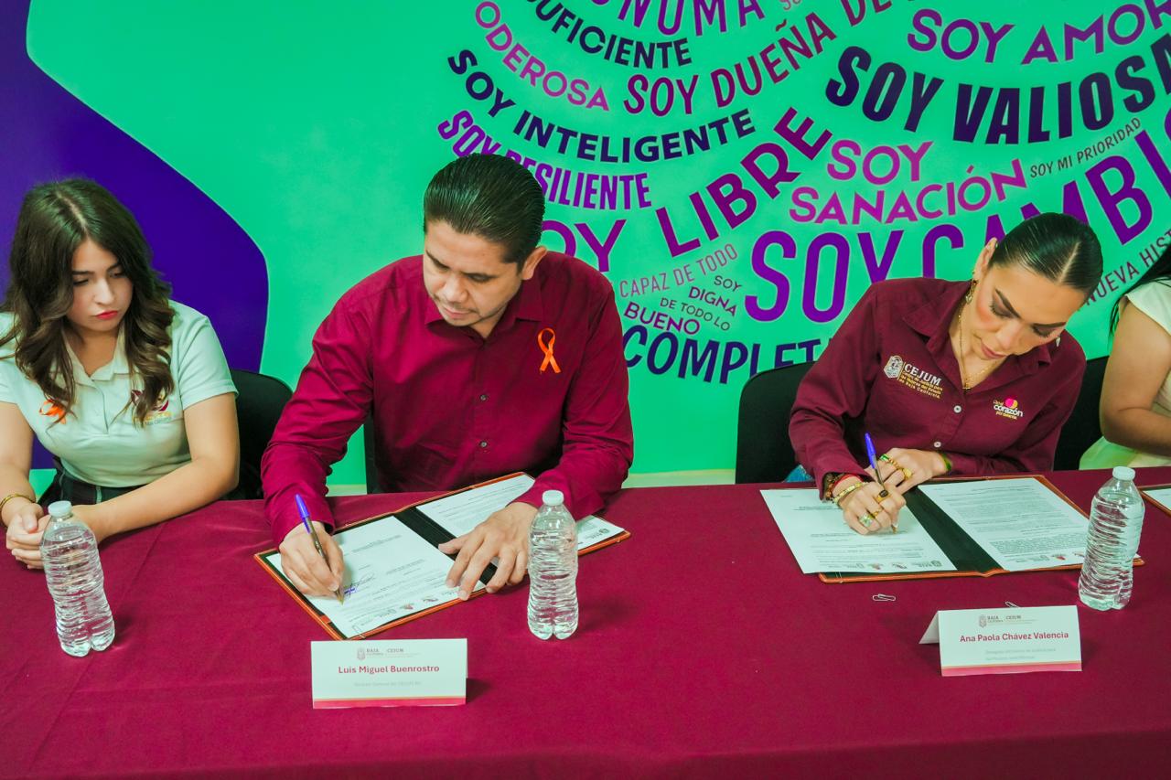 El convenio tiene como objetivo principal prevenir y atender la violencia contra mujeres y niñas, así como brindar acompañamiento a estudiantes mediante servicios especializados como orientación psicológica, asesoría jurídica y canalización oportuna en casos de riesgo.