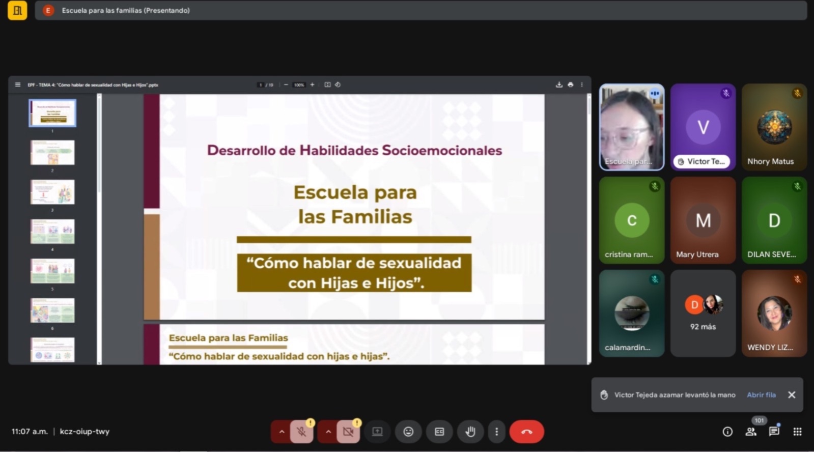 Las pláticas iniciaron el 18 de agosto y se extenderán a lo largo del mes de septiembre, abordando temas fundamentales como: Derechos de niñas, niños y adolescentes; Prevención del abuso sexual infantil; Violencia de género y cómo identificarla; Perspectiva de género, roles y respeto; Estrategias para la solución de conflictos; Cómo hablar de sexualidad con hijas e hijos; Gestión de emociones y fortalecimiento de la autoestima; y Fomentar el diálogo en familia.