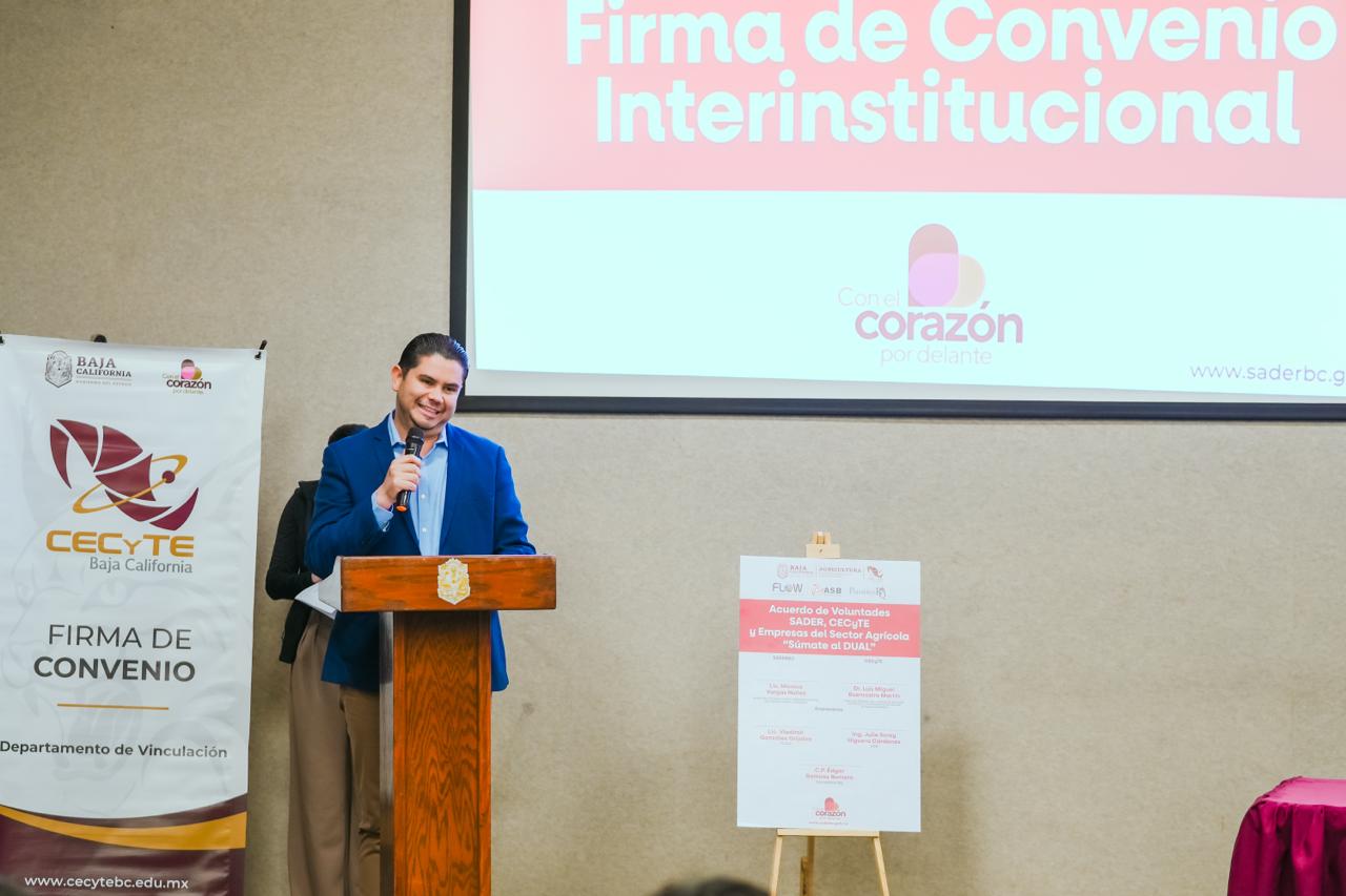 MEXICALI.– La Secretaría de Agricultura y Desarrollo Rural de Baja California (SADER BC) y el Colegio de Estudios Científicos y Tecnológicos del Estado de Baja California (CECyTE BC) unen esfuerzos a través de un convenio de colaboración que impulsará el desarrollo académico, formativo y laboral de más de 2 mil 300 estudiantes en carreras directamente relacionadas con el sector agrícola.