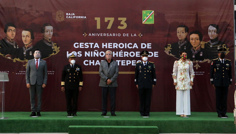 En acto solemne el Gobernador de Baja California, Jaime Bonilla Valdez, acompañado por autoridades militares, navales y los Alcaldes de Mexicali y Ensenada celebraron el 173 Aniversario de la Gesta Heroica de los Niños Héroes de Chapultepec.