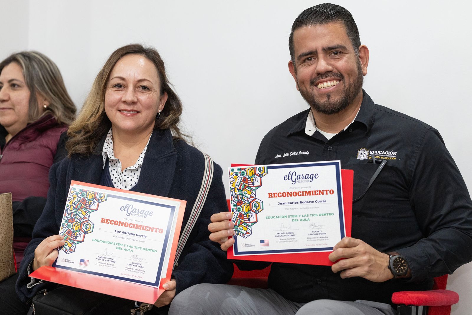 MEXICALI. El Grupo Educativo 16 de Septiembre y el Garage Project Hub, en colaboración con la Secretaría de Educación de Baja California, el Instituto de Capacitación de Alta Tecnología de Baja California (ICAT BC) y financiado por el Consulado de Estados Unidos en Tijuana, encabezaron la entrega de Certificados del Programa Estatal de Capacitación Docentes 2024 impulsado por el